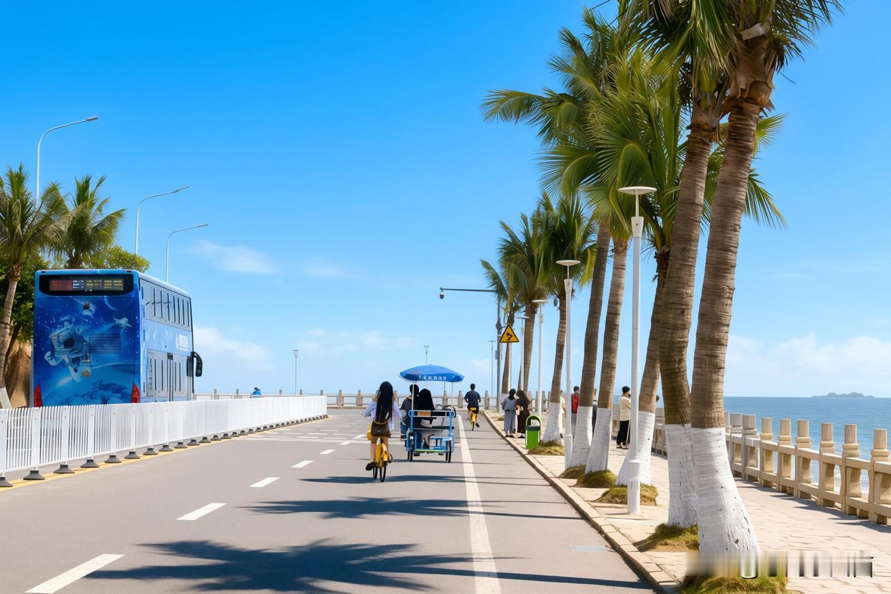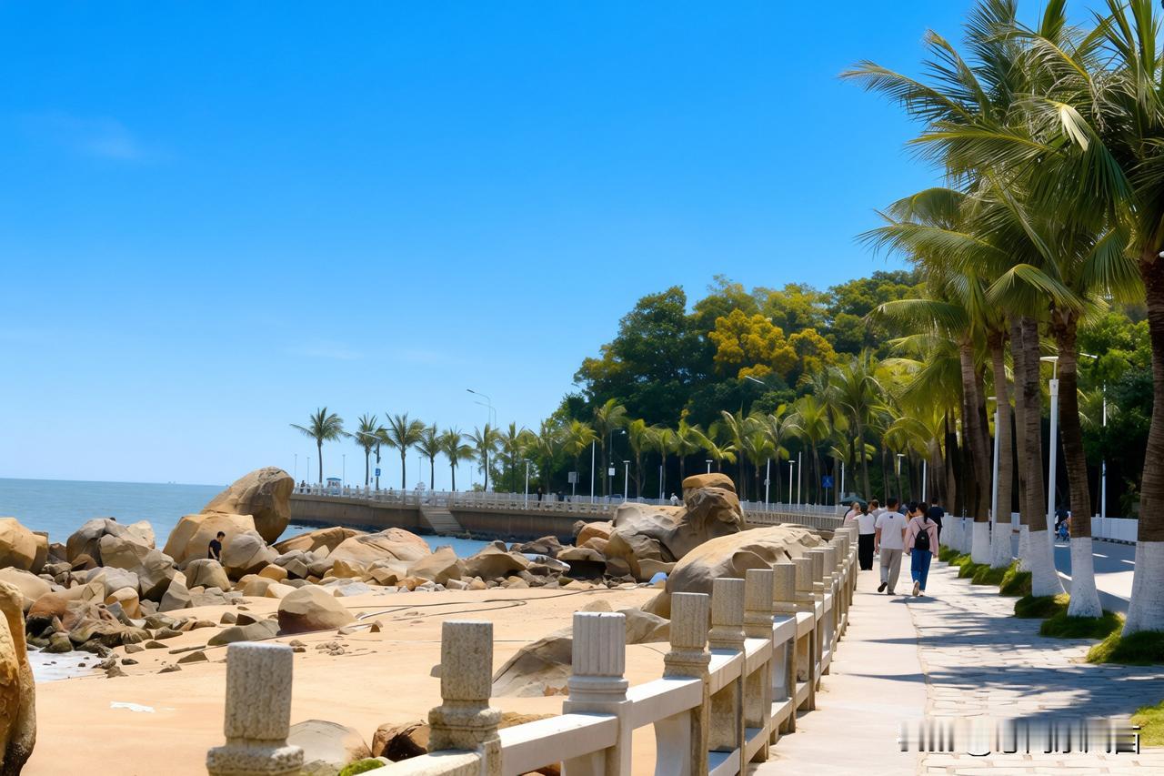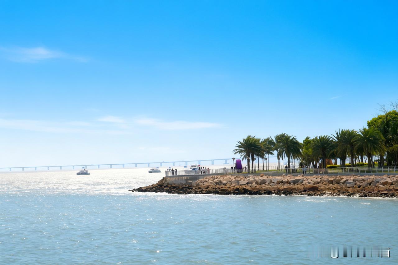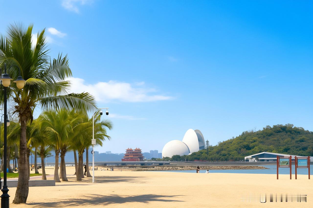 晴日高悬,于珠海逐风而行。沿着情侣路的海岸悠然漫步,婆娑椰影映衬着湛蓝晴空。