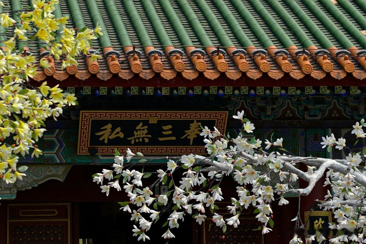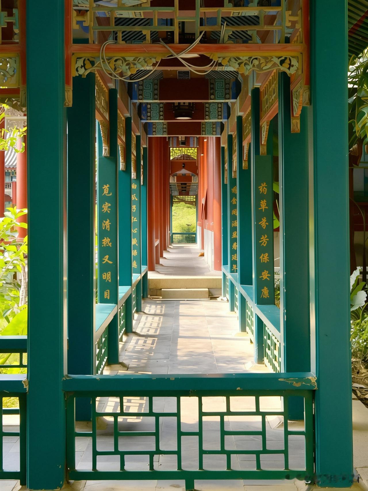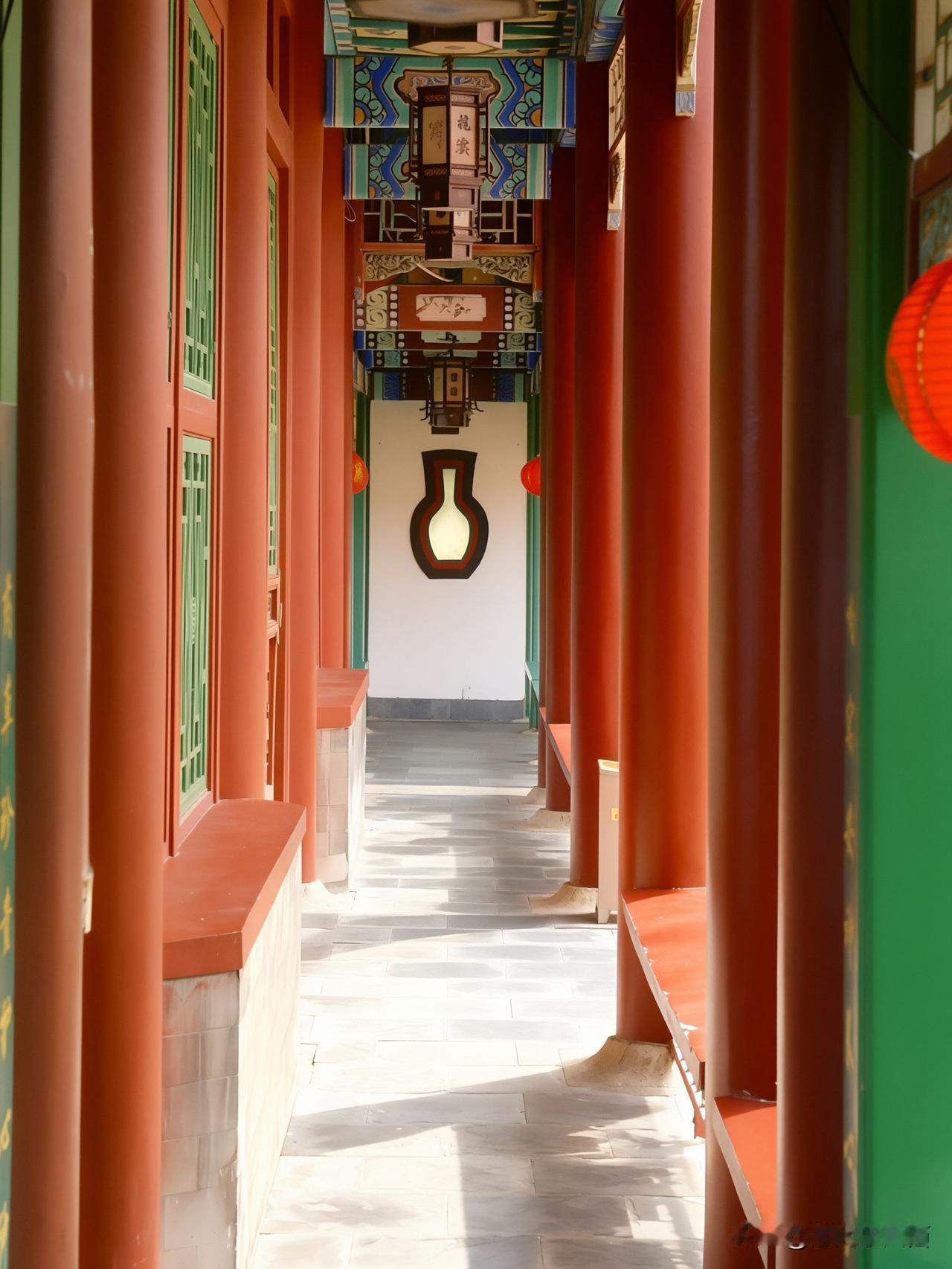 碧水泱泱,白石灯静立湖畔,熏风殿临水倚岸,红廊绿柱映清波,漫步长廊间,雕梁画栋藏着雅致古韵。