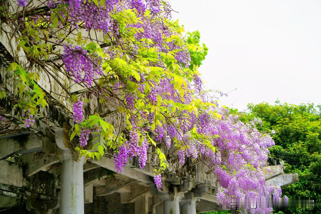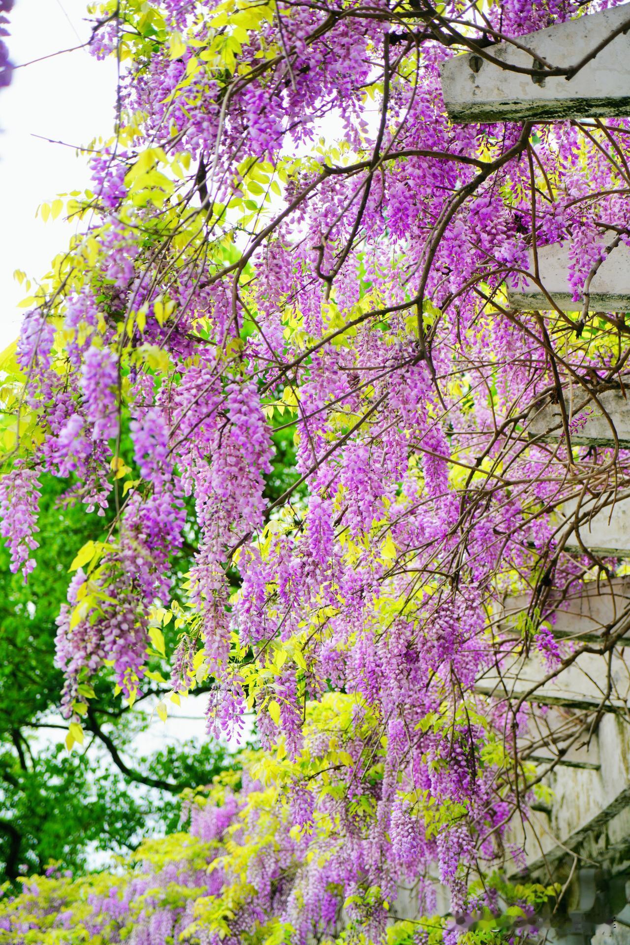 垂坠的花串如紫色瀑布倾泻而下,连空气里都浮动着清甜。