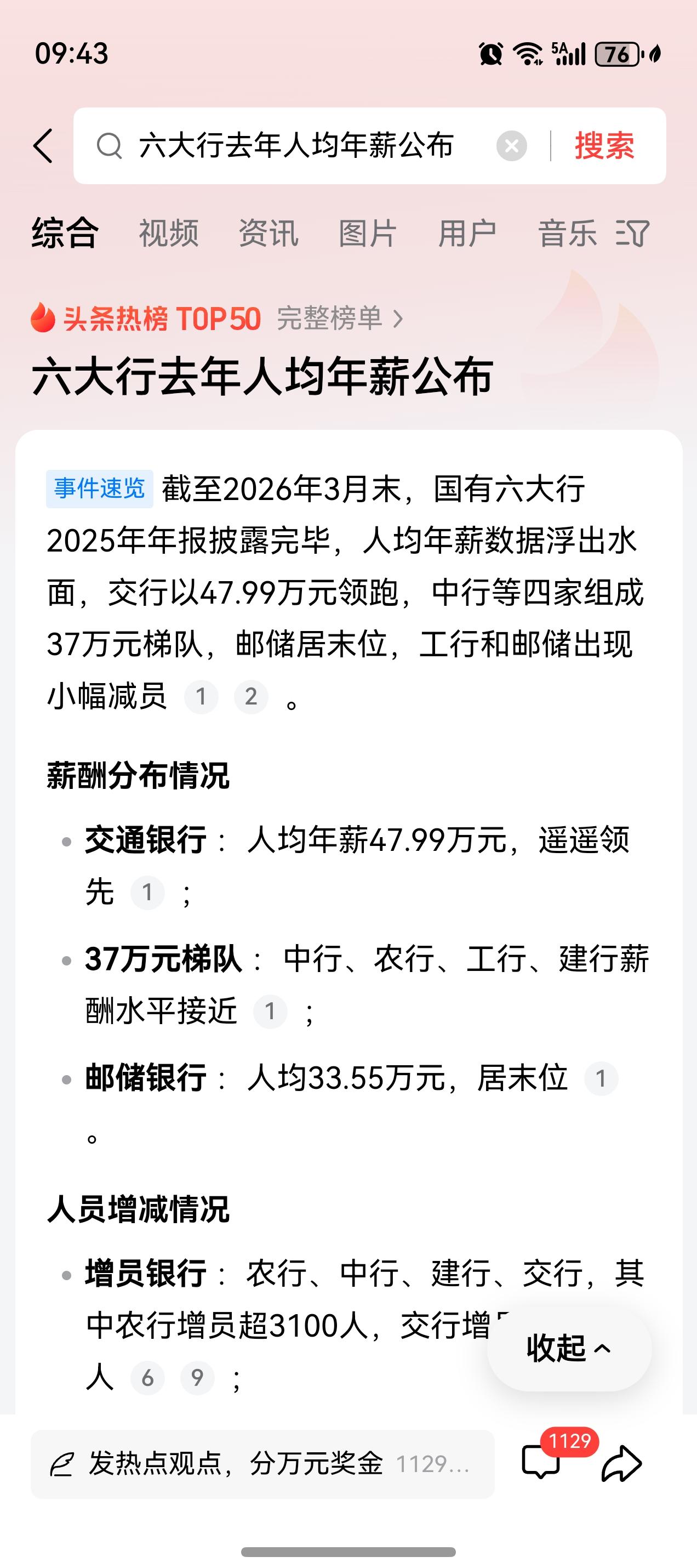 不知道各行业之间的年收入差距有多大,但总感觉有点不对劲。国有六大行2025年人均