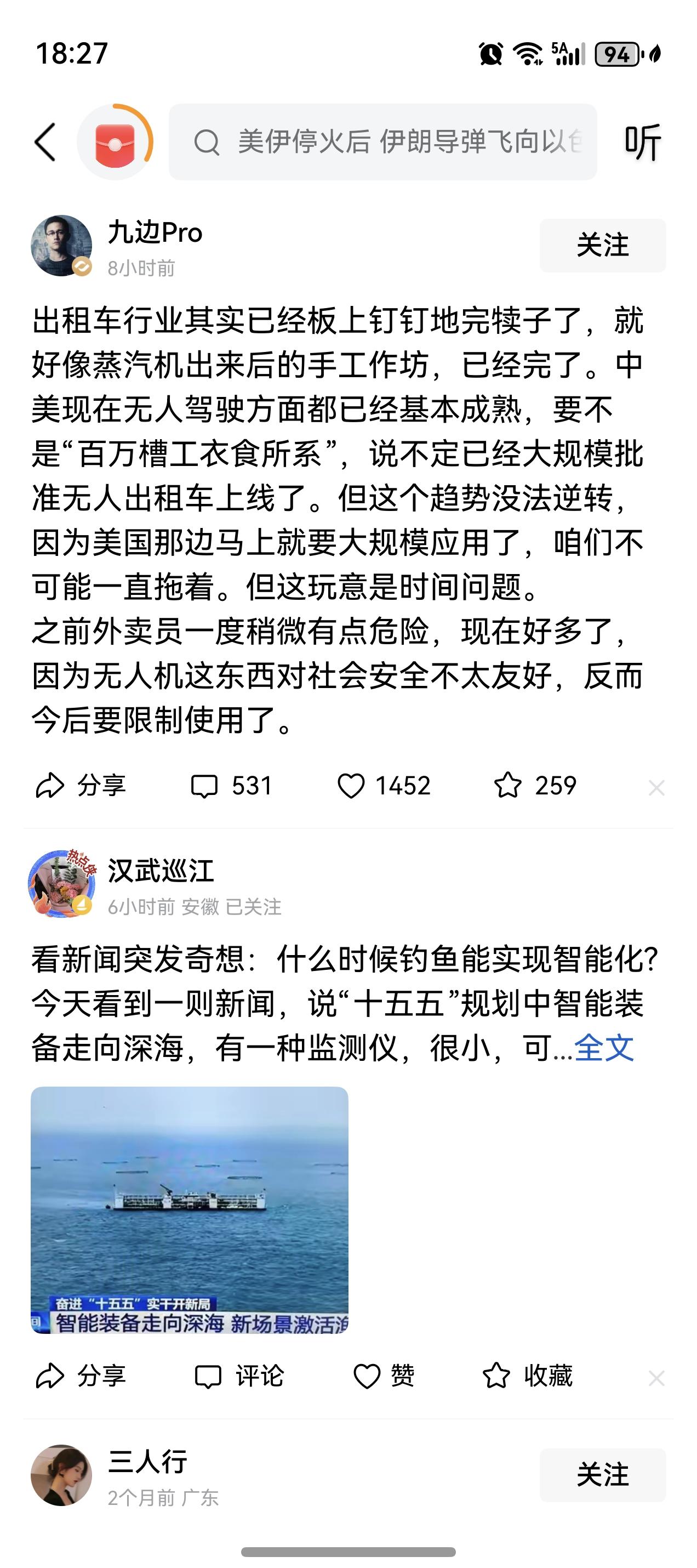 拥有300多万粉丝的大V九边Pro发文:出租车行业其实已经完蛋了,因为无人驾驶已经基本成熟,无人驾驶的大规模应用只是个时间问题。
