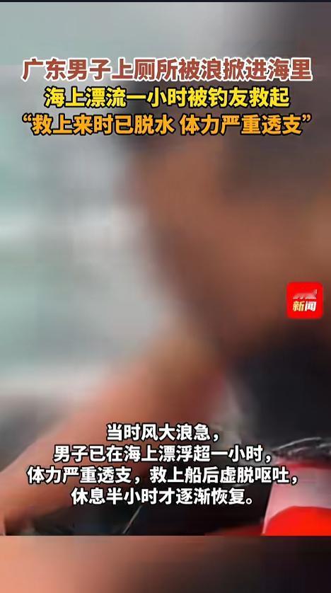 信息来源:《广东男子上厕所被浪掀进海里,海上漂流一小时被钓友救起,“救上来时已脱水,体力严重透支”(编辑:曹宇康)》时速新闻
