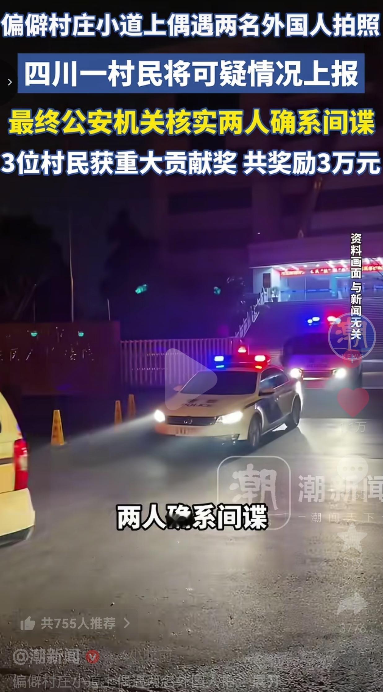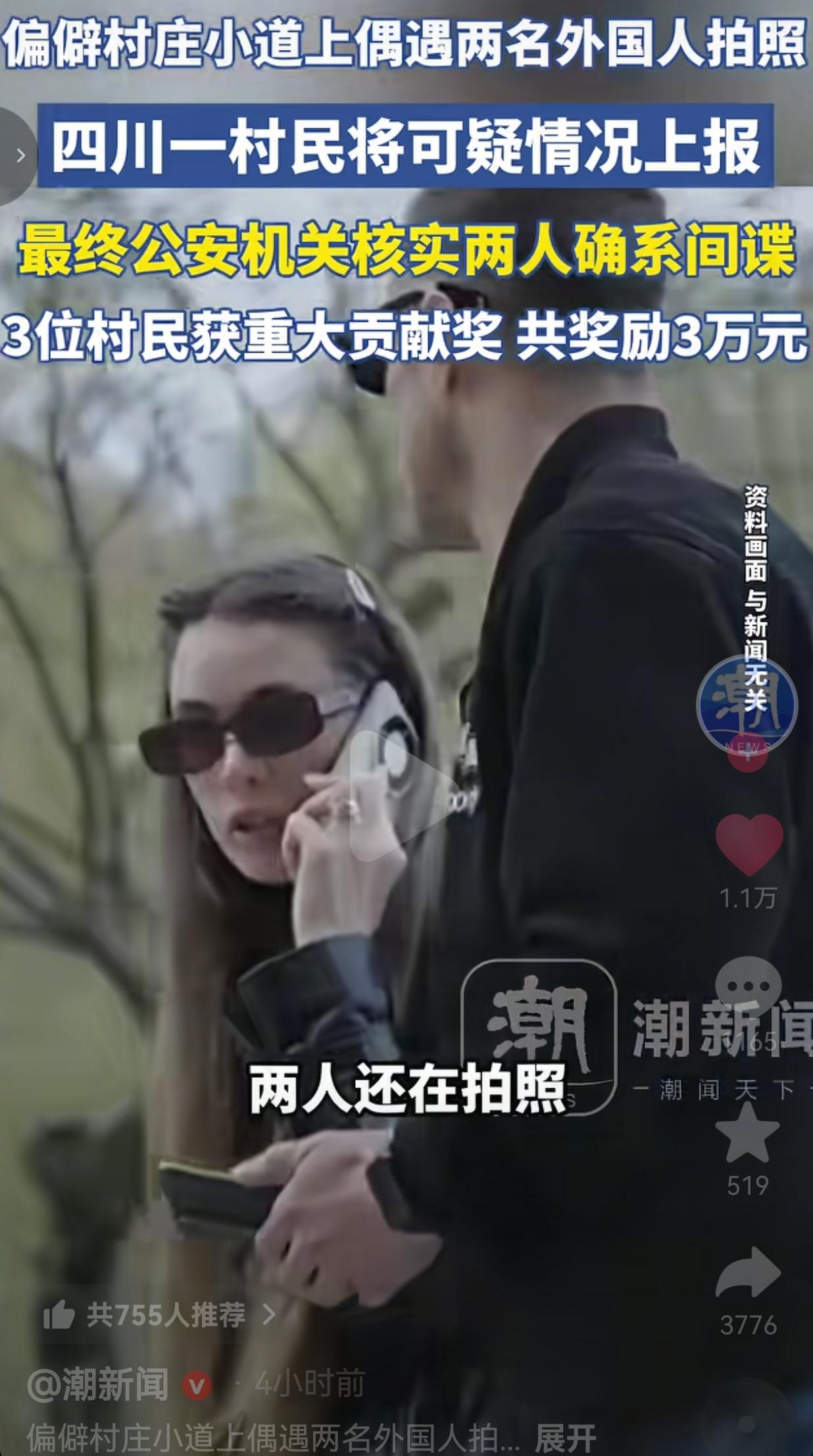 在偏僻山村小道上,村民撞见俩外国人对着国家重大工程疯狂拍照,行为极其可疑,警觉的小姜没有丝毫犹豫,立即上报村委,最终查实两人确系境外间谍,3位村民共拿3万元重大贡献奖!网友:这才是咱们老百姓守护家国最硬核、最亮眼的操作!