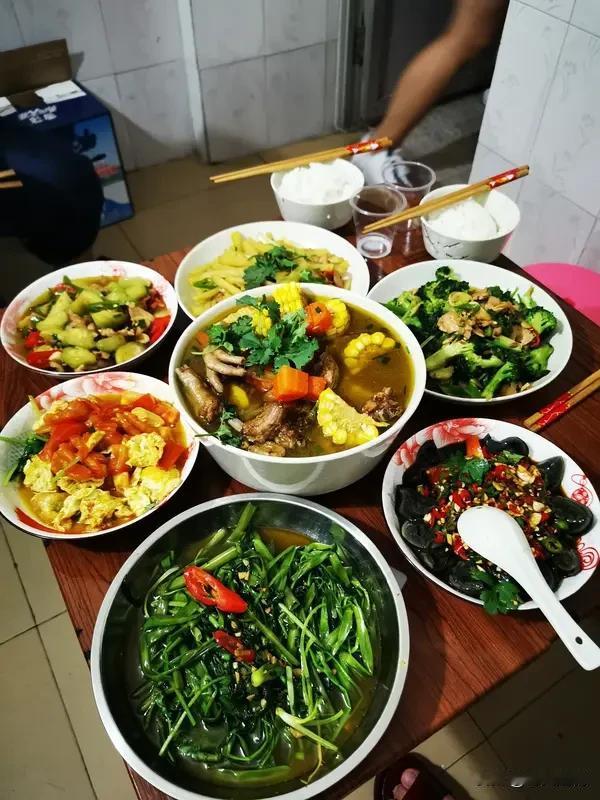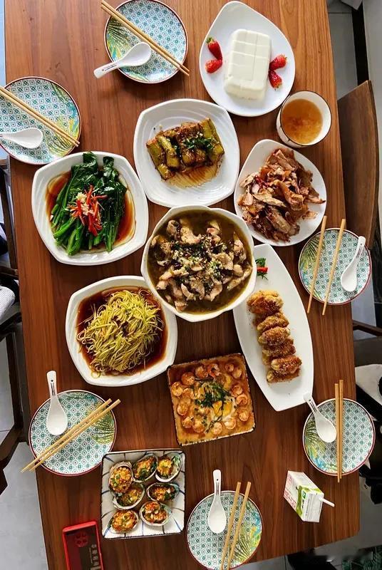 平凡的家常菜,藏着生活的烟火气。我超爱口蘑鸡翅,鸡翅鲜嫩多汁,口蘑吸满了汤汁,一口下去超满足。五花肉炒豆干也不错,五花肉肥瘦相间,豆干越嚼越香,两者搭配堪称一绝。双蛋粉丝汤简单又好喝,鸡蛋的鲜香和粉丝的爽滑完美融合。还有白灼蔬菜双拼,清爽解腻,补充维生素。这些家常菜不需要复杂的食材和高超的厨艺,却能在平淡日子里带来满满的幸福感,真是百吃不厌。