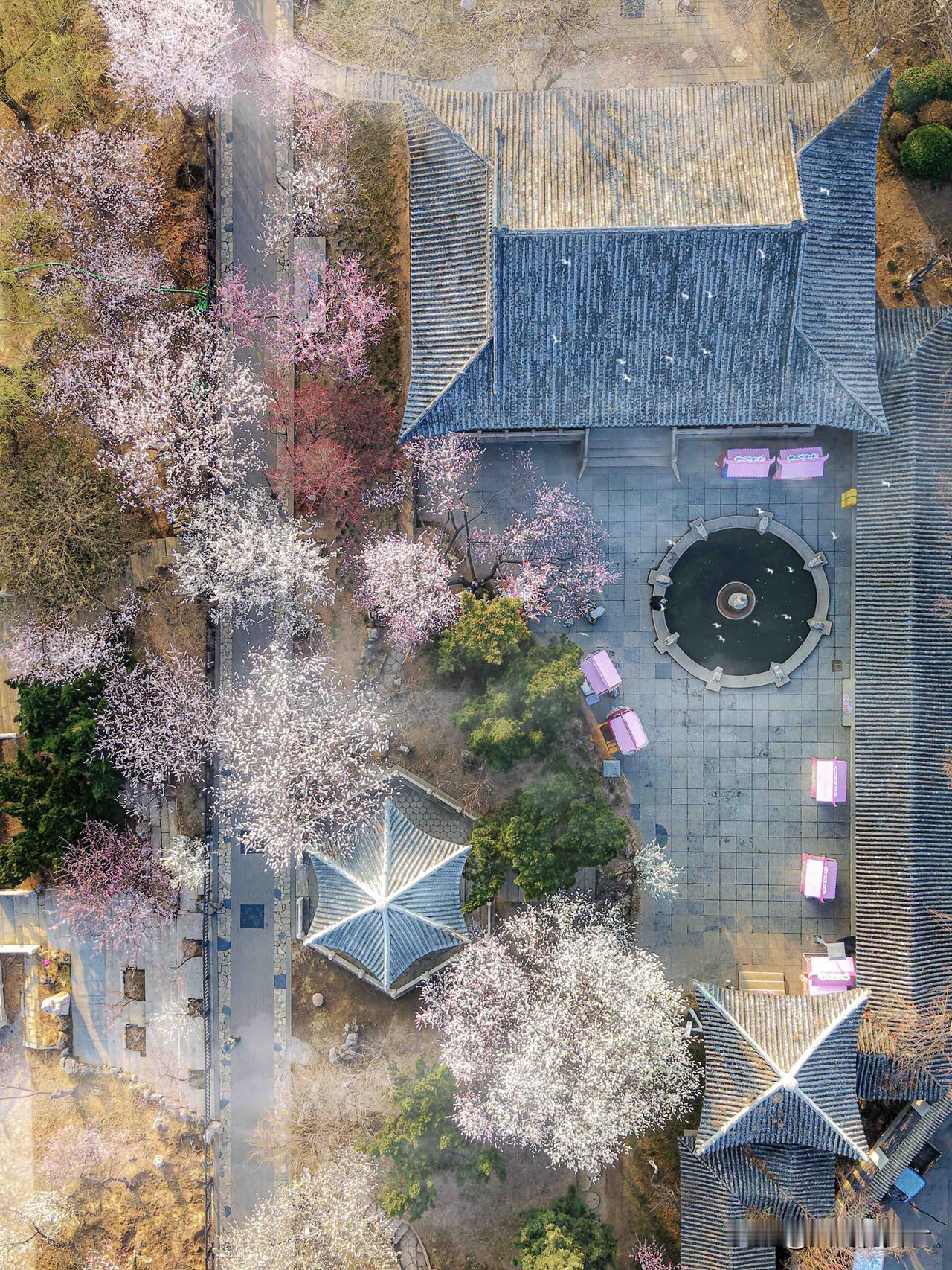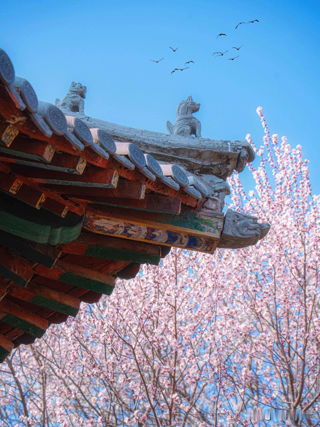 • 龙亭飞檐脊兽与桃花同框,拍中式建筑美学