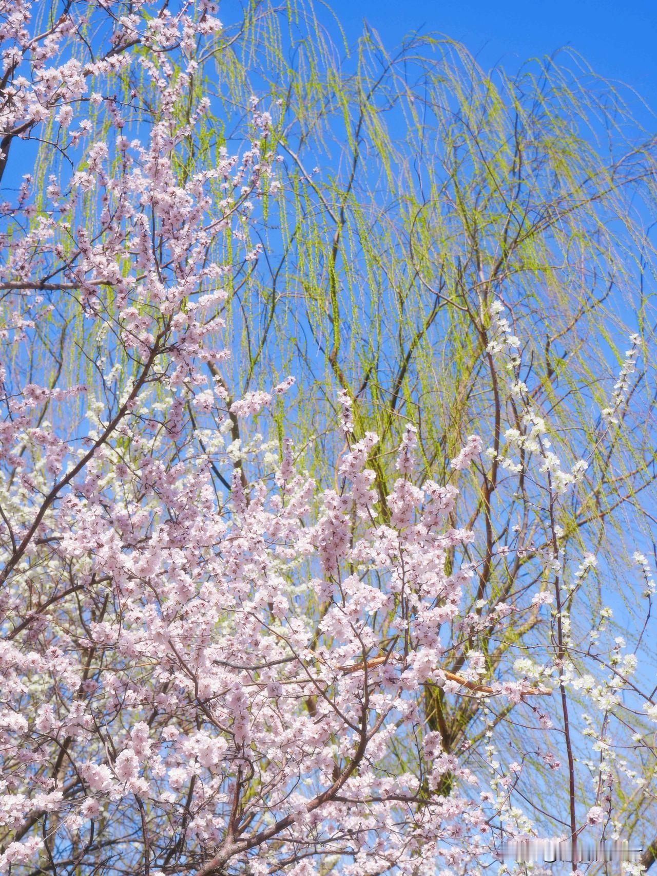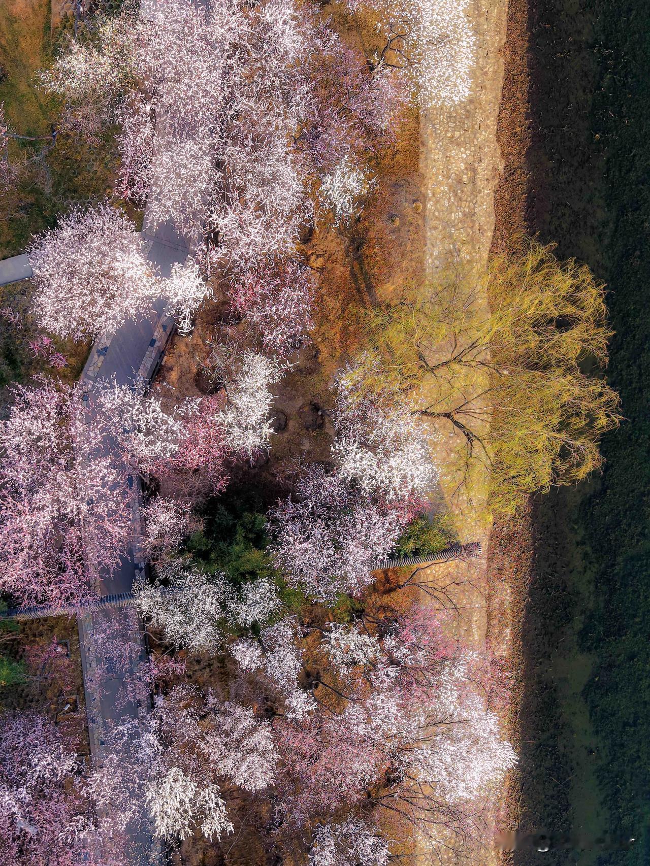 ✅当前花况:桃花开放约80%,山桃、碧桃次第绽放,粉白嫣红交织成海,搭配柳丝新绿,春意拉满