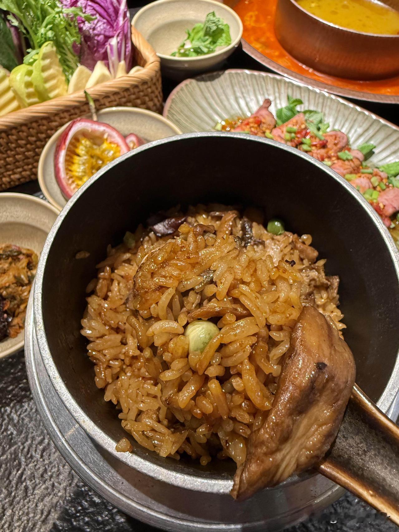 • 牛肝菌焖饭:干饭人必点!牛肝菌+腊肠+火腿熬煮,米饭油润裹满菌香,用剩的菌汤泡饭直接封神,还能点单碗尝鲜。