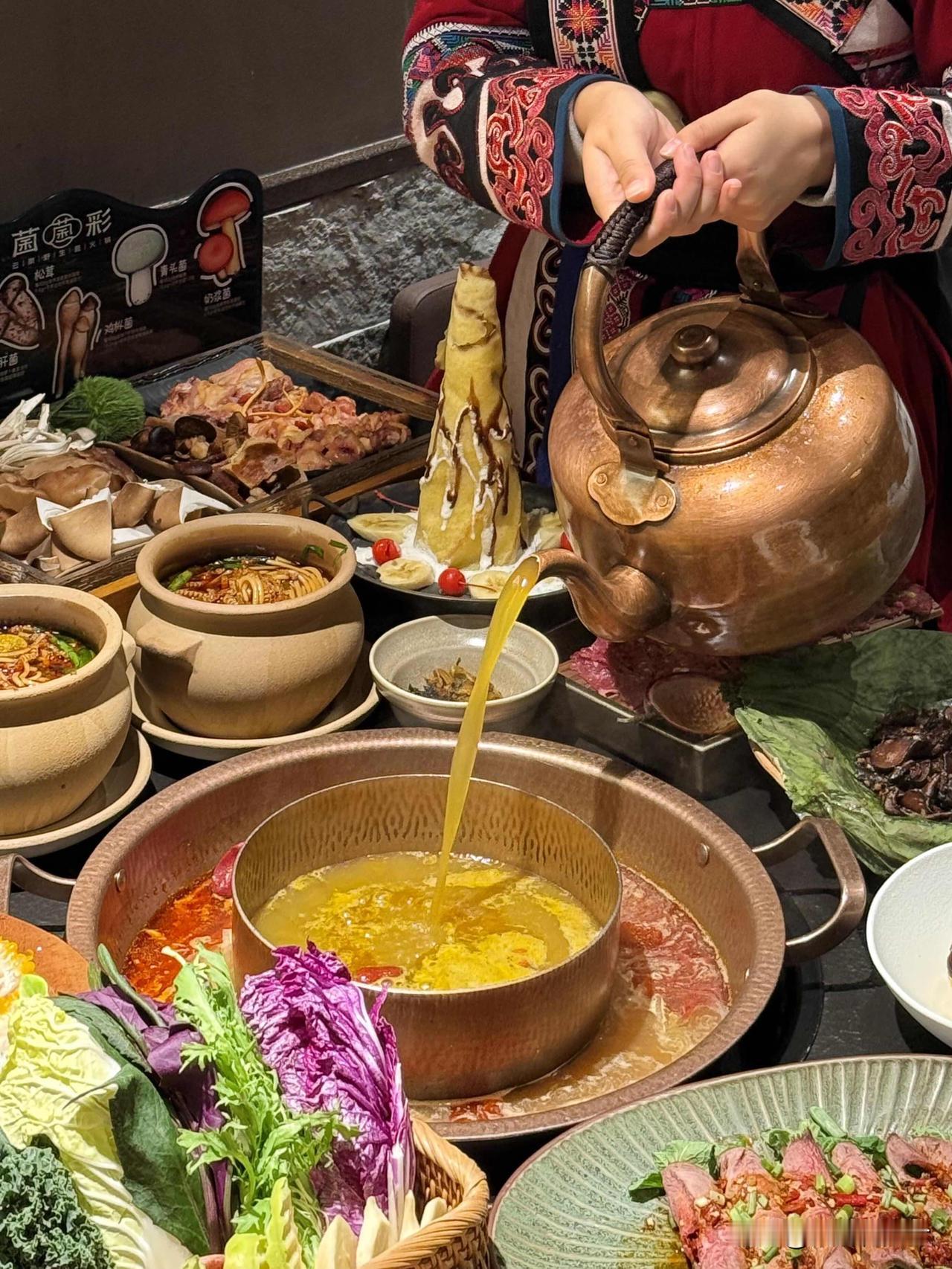 2. 用餐技巧:菌子一定要按服务员提醒煮够时间(多为16分钟左右),确保安全;先喝菌汤再涮菜,能最大程度尝到底汤的鲜;涮肉优先选酸汤外圈,更提味。