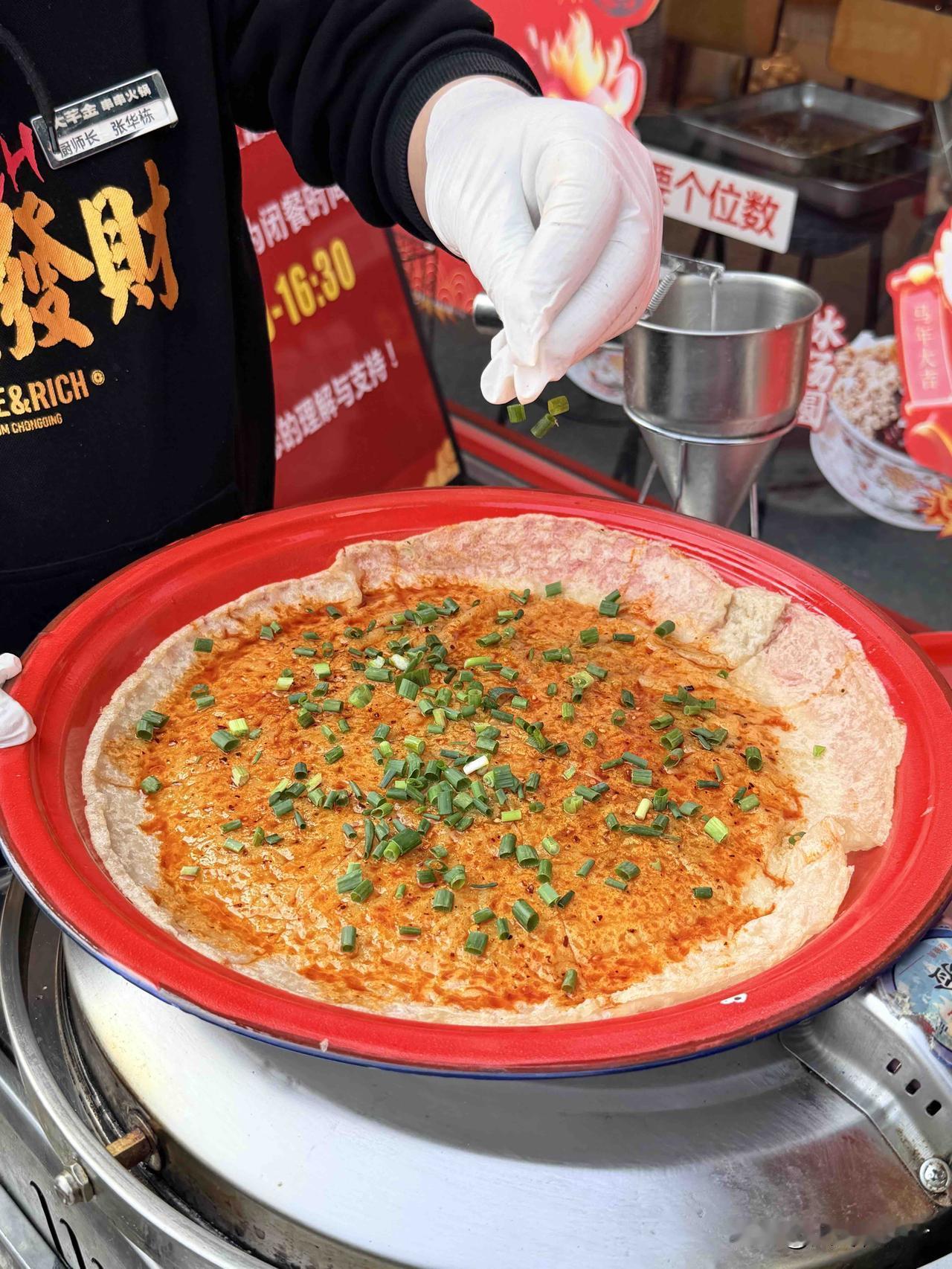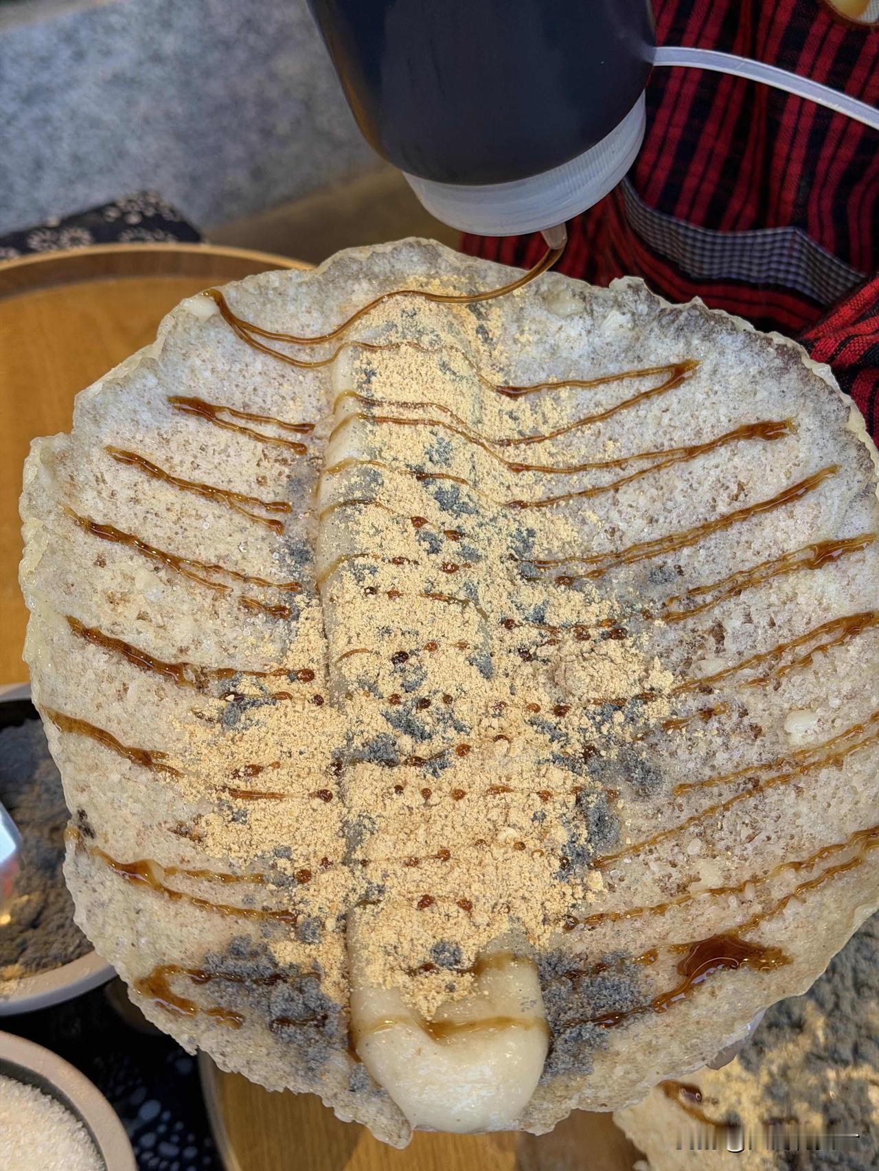 • 锅巴糍粑:师傅现锤现摊能拉丝!外脆里糯,蘸红糖黄豆粉,解辣又解腻