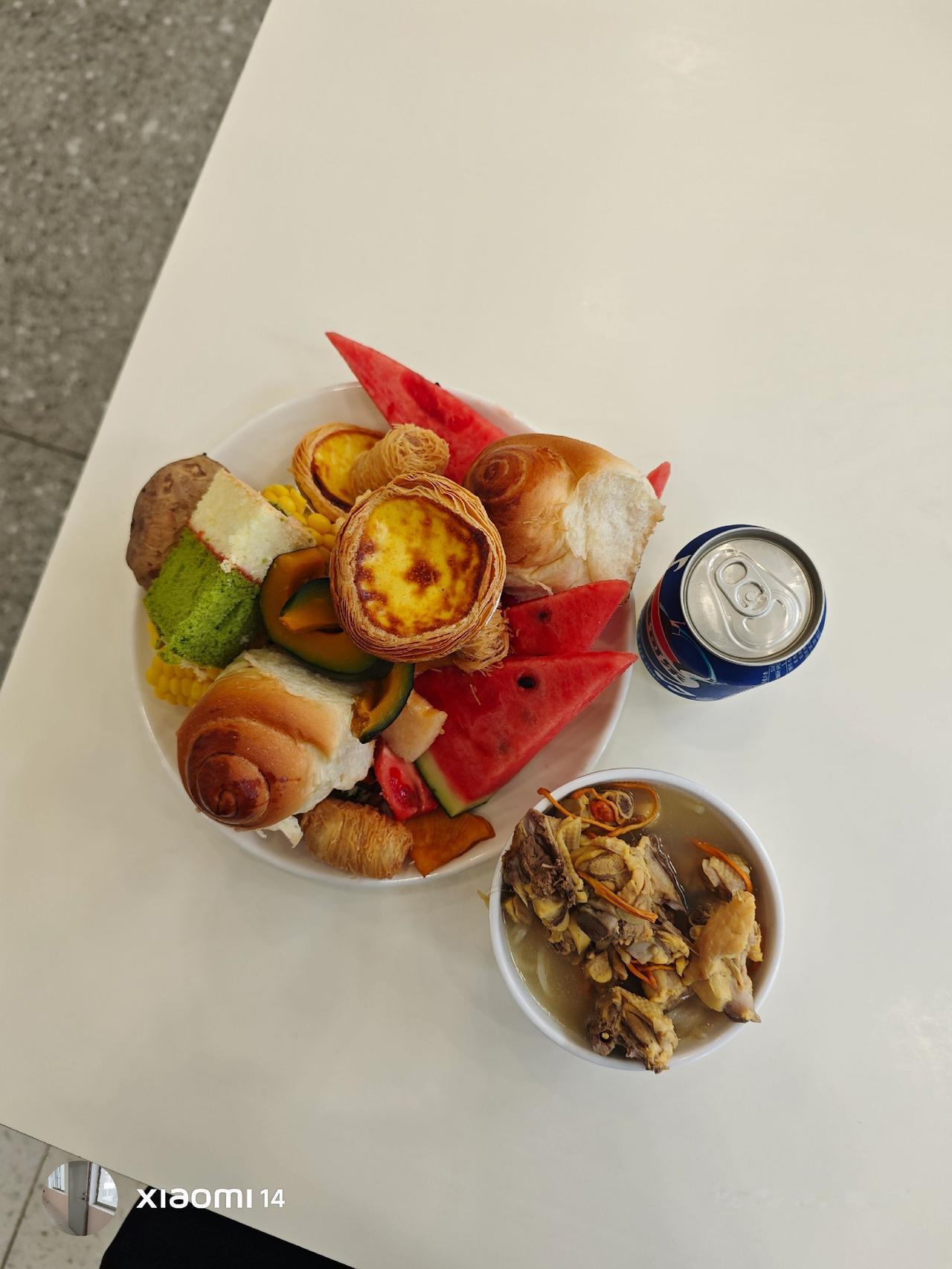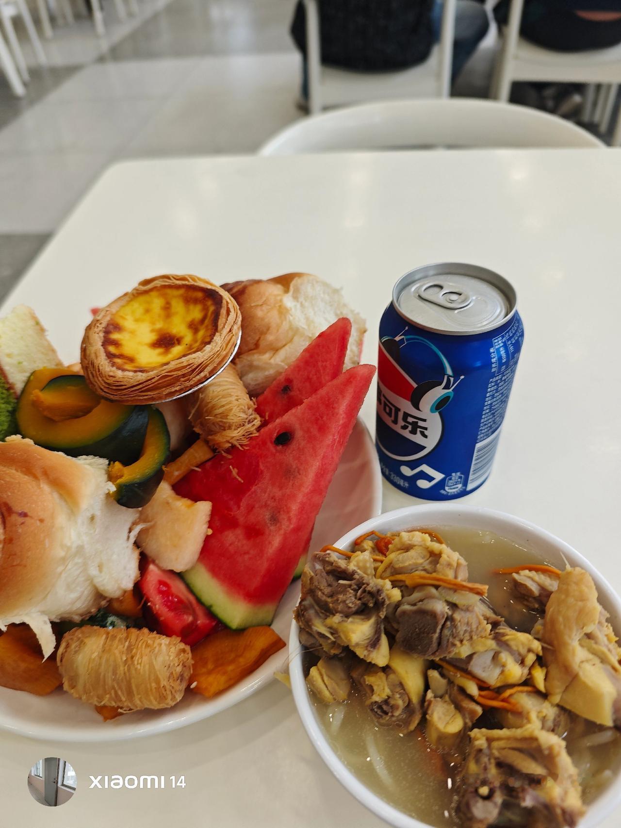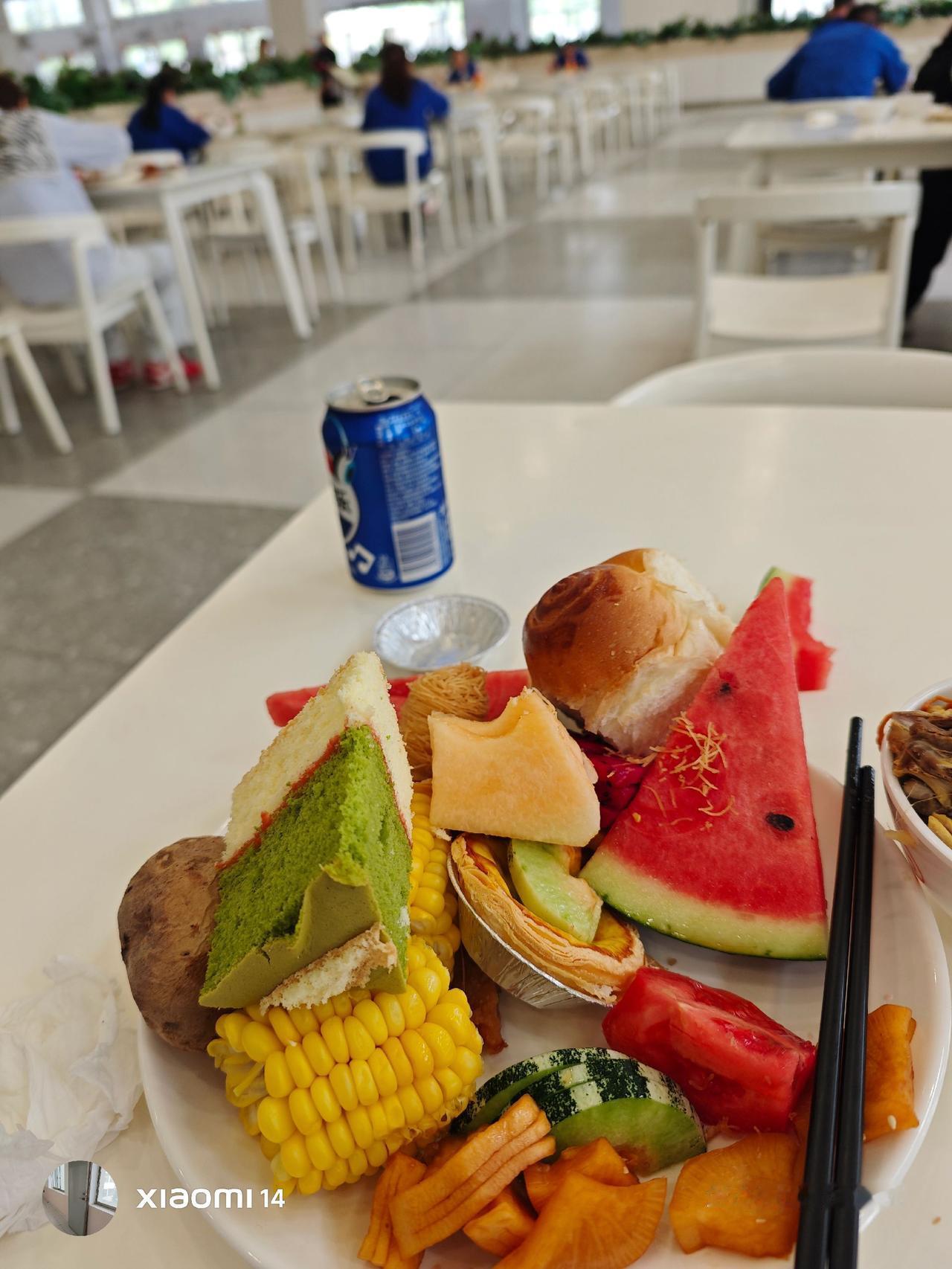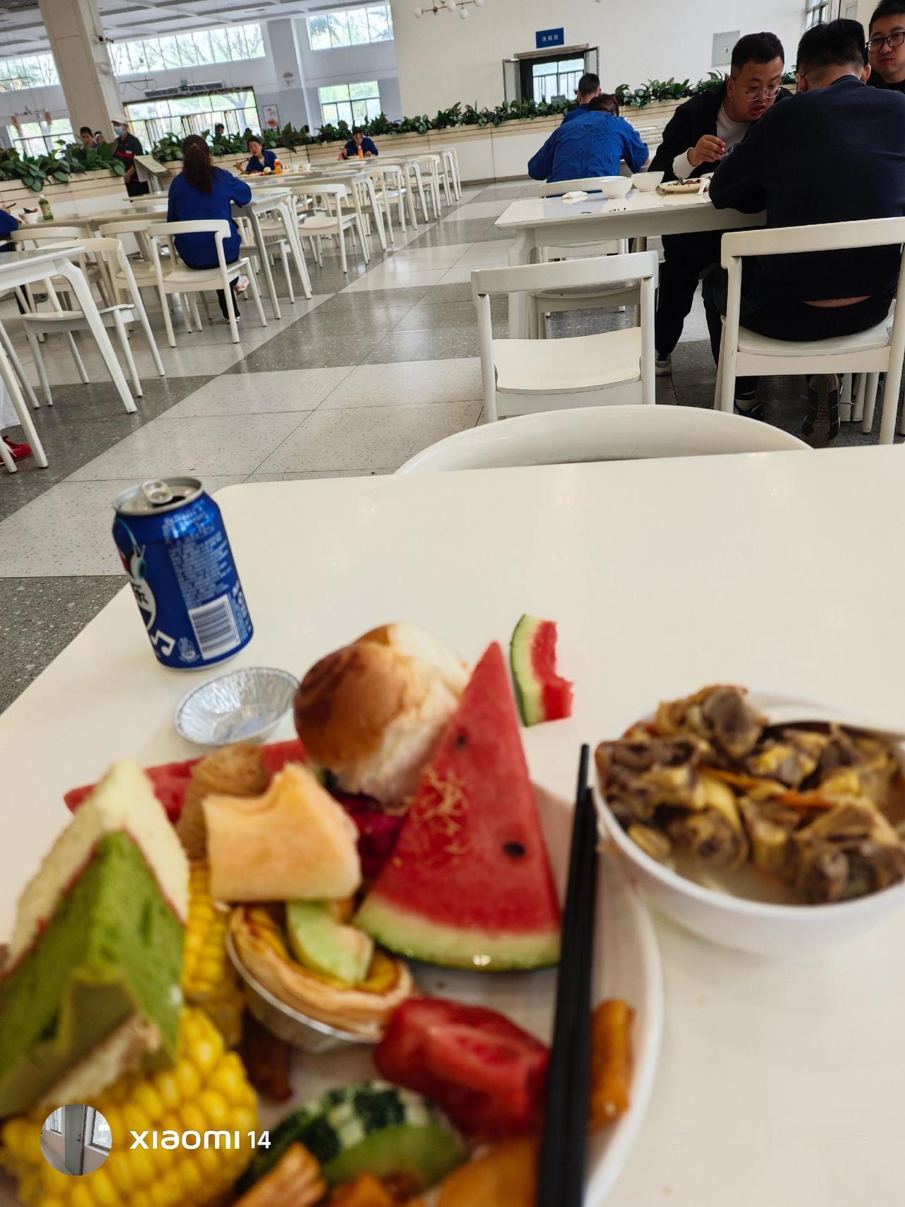 18块8有肉有菜,有水果,我不知道,以为肉不能打,全部跑去吃水果了。吃完水果再重新打了一份肉,吃完肉才想起来外面还有我的一碗面,可惜了10元的一碗的面了,只吃了一半。自助餐