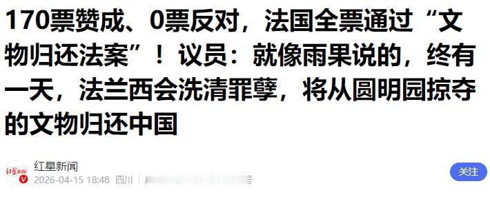 这意味着,法国在过去从中国掠夺走的文物,将全部归还给中国,这一天终于来了。