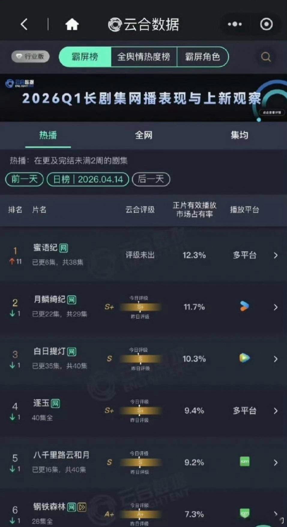 此情此景,不知该说是现在大盘太冷,还是《蜜语纪》确实好看。