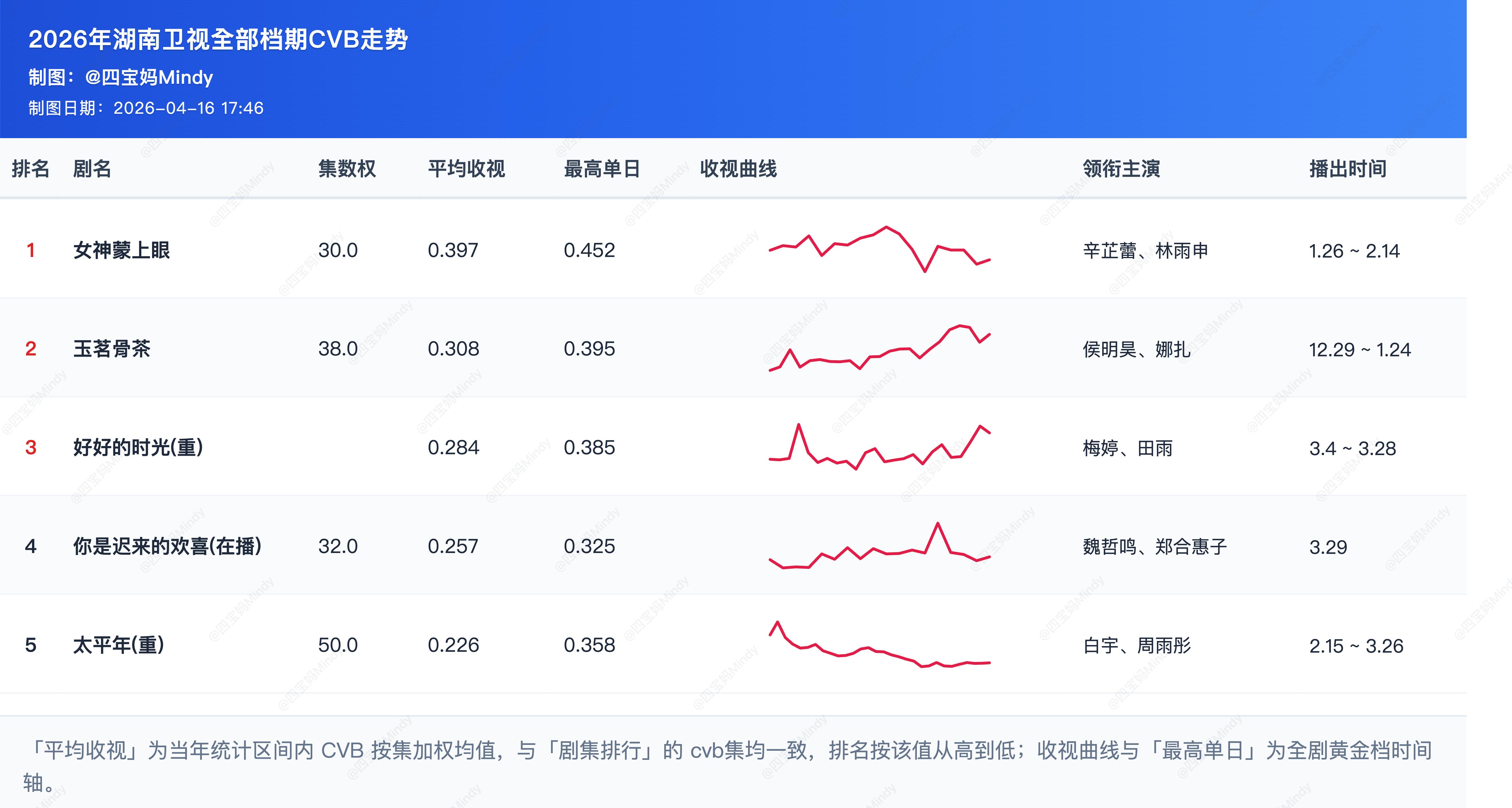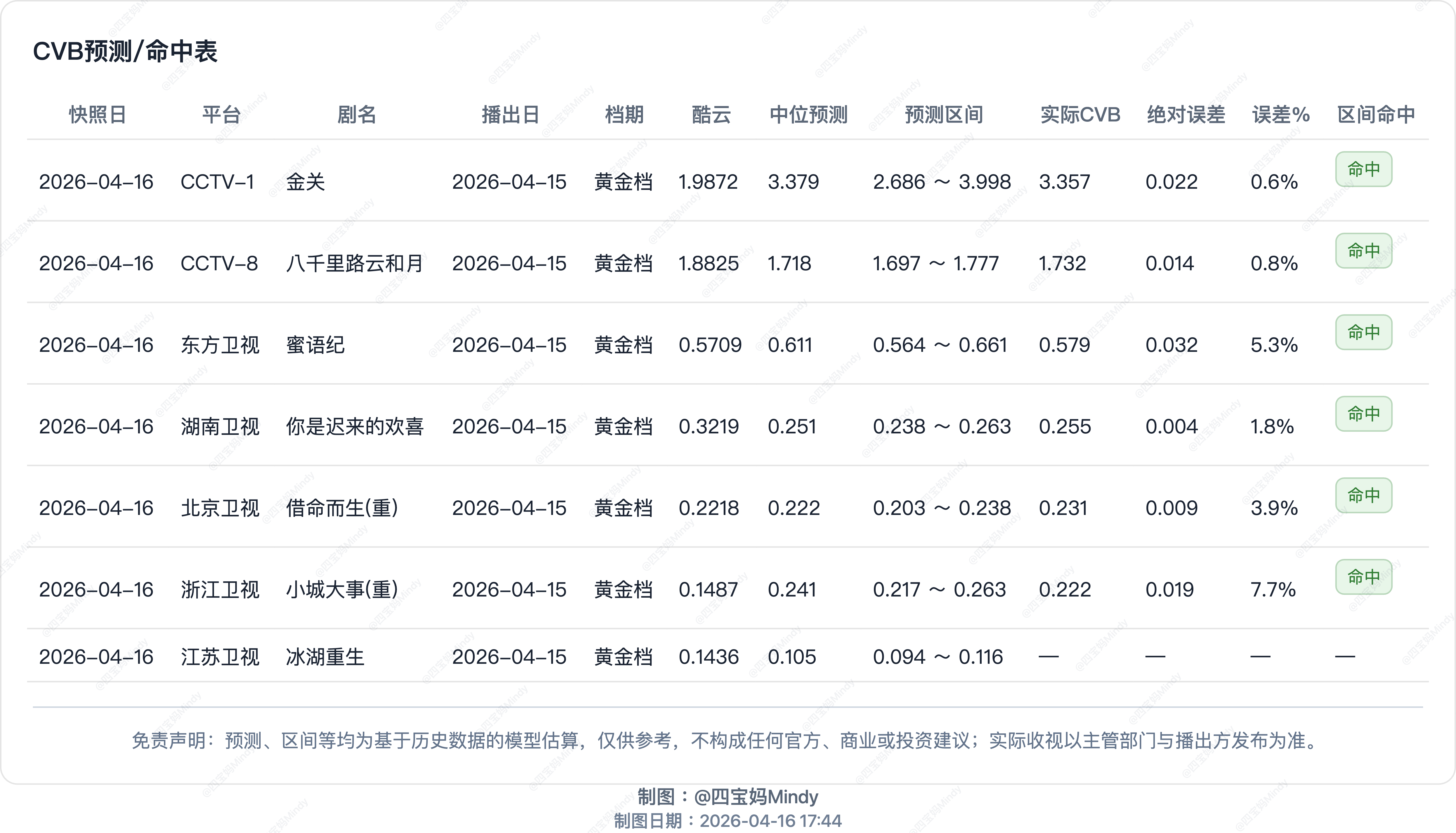 4.15 CVB验证昨天预测《你是迟来的欢喜》cvb集均0.256,最后0.257居湖南全年第四。但是《蜜语纪》预测的高了,可能模型还要再修正一下。