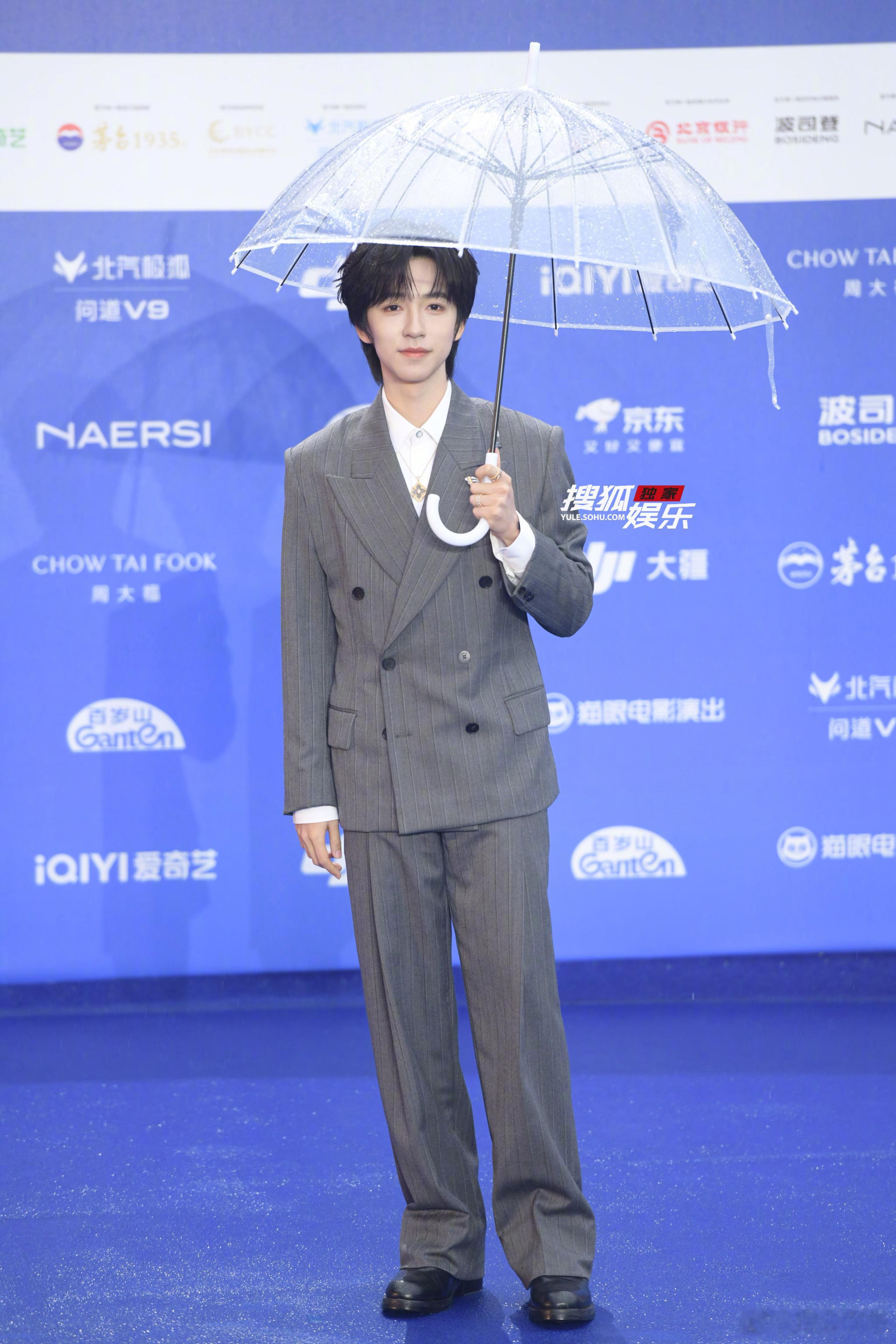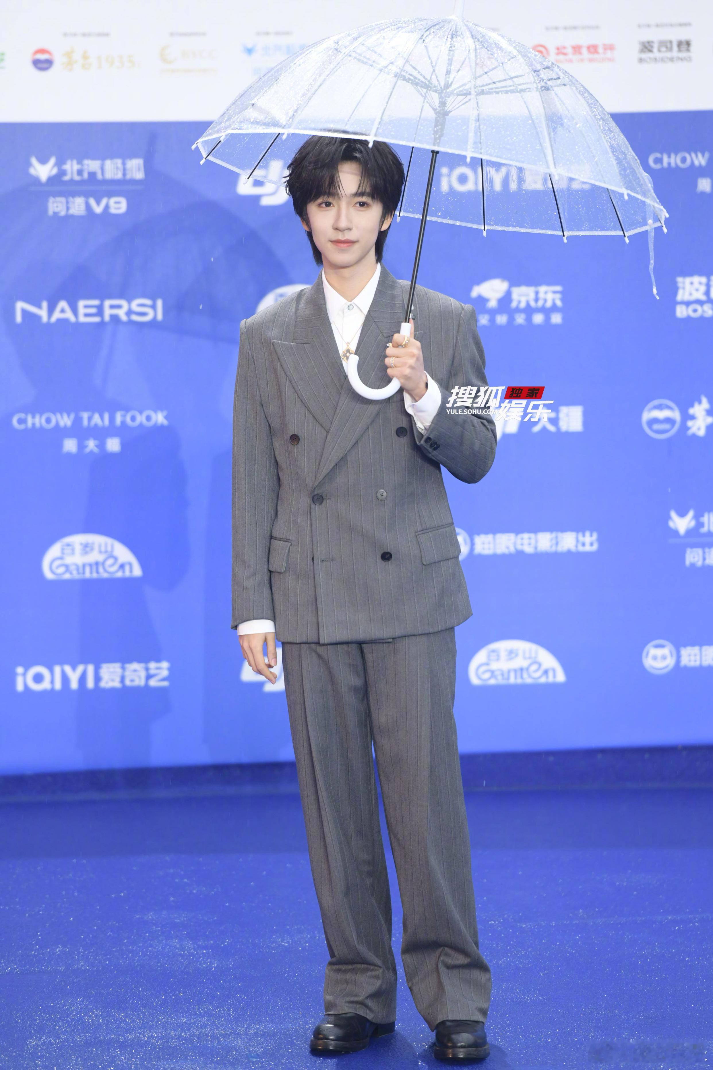 青年主持人一身灰色西服亮相北影节红毯,一起期待小贺晚上的精彩表现 北京国际电影节