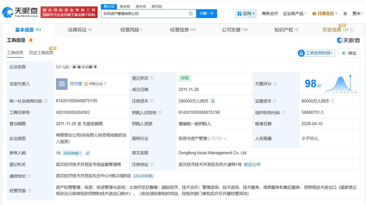 天眼查App显示,近日,东风资产管理有限公司发生工商变更,注册资本由8亿人民币增至28亿人民币,增幅250%。
