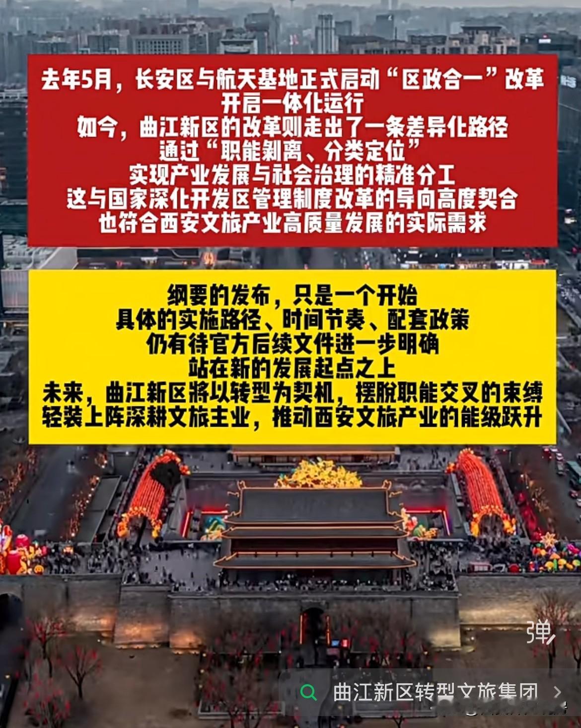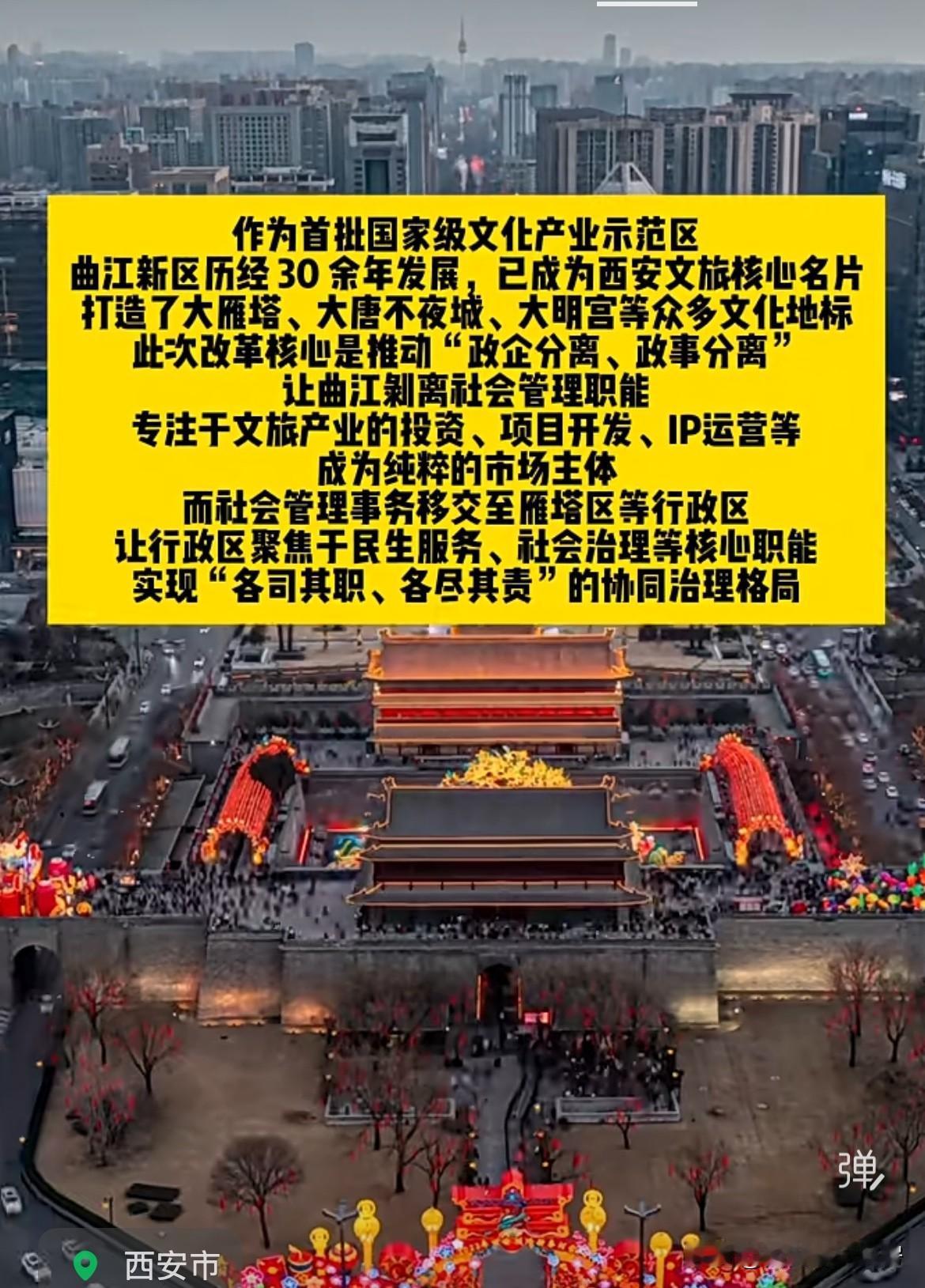 西安十五五规划: 曲江转型为"市级文旅产业集团" 社会事务移交行政区雁塔
