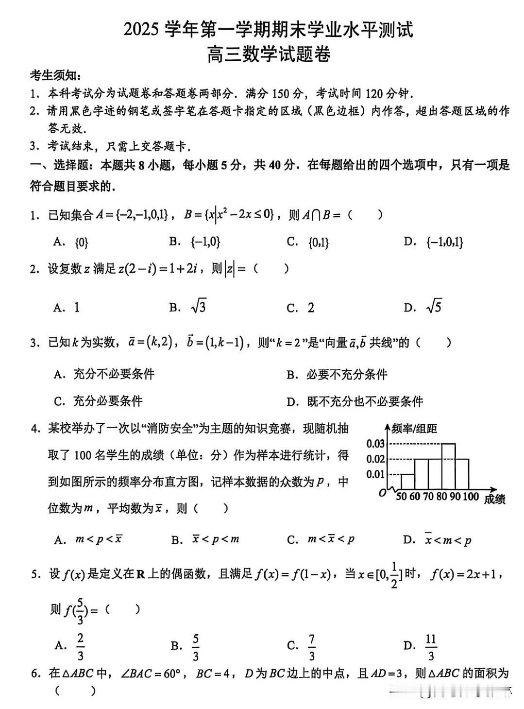 最新2026年2月‼️浙江省杭州市2026届高三上学期期末学业水平测试数学试卷
