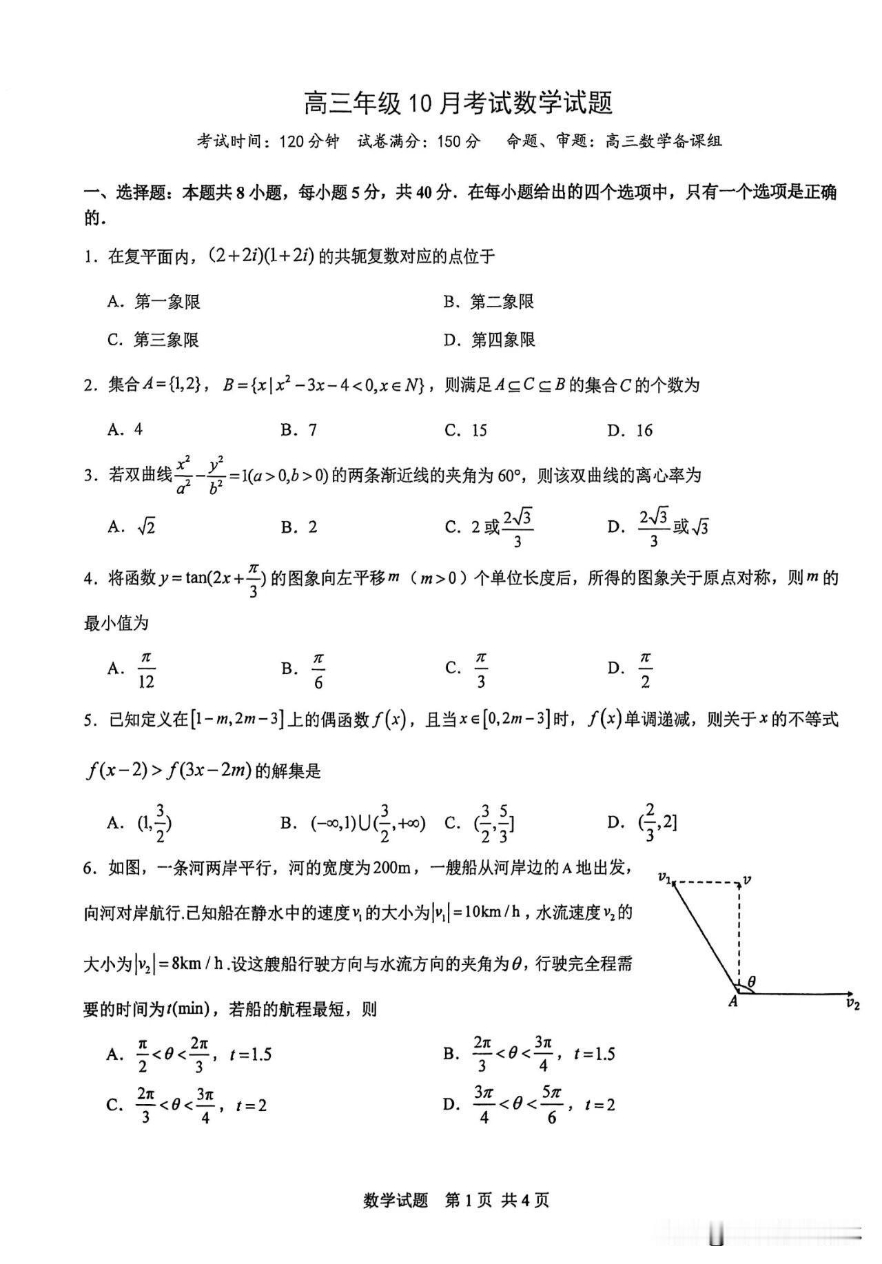 湖北省武汉市华中师范大学第一附属中学2025-2026学年高三上学期十月月度检测数学试卷。这个难度较大很难及格‼️