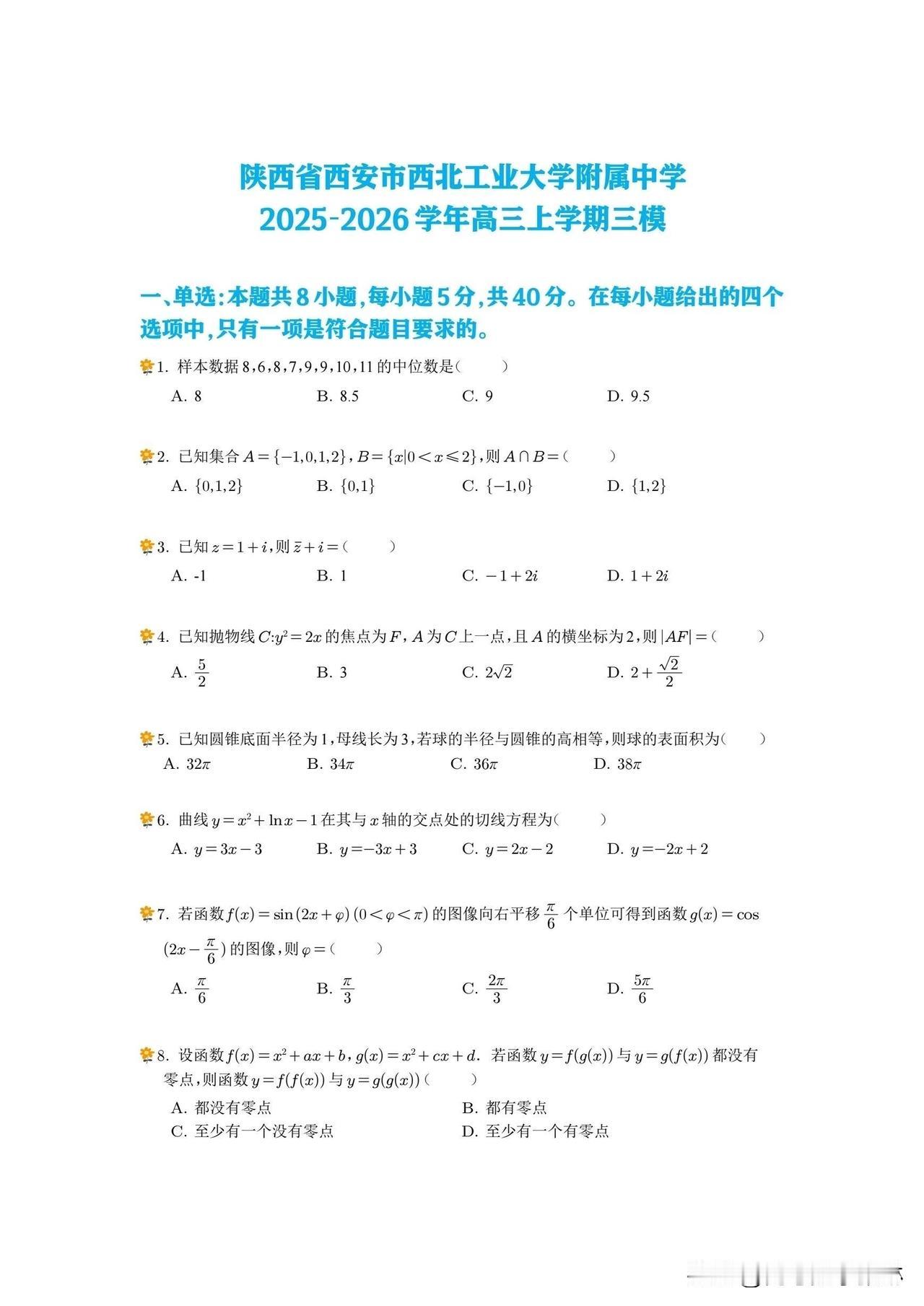 最新好题‼️ 2025年高考88个清华北大‼️ 西安市第一名校🥇【西工大附中