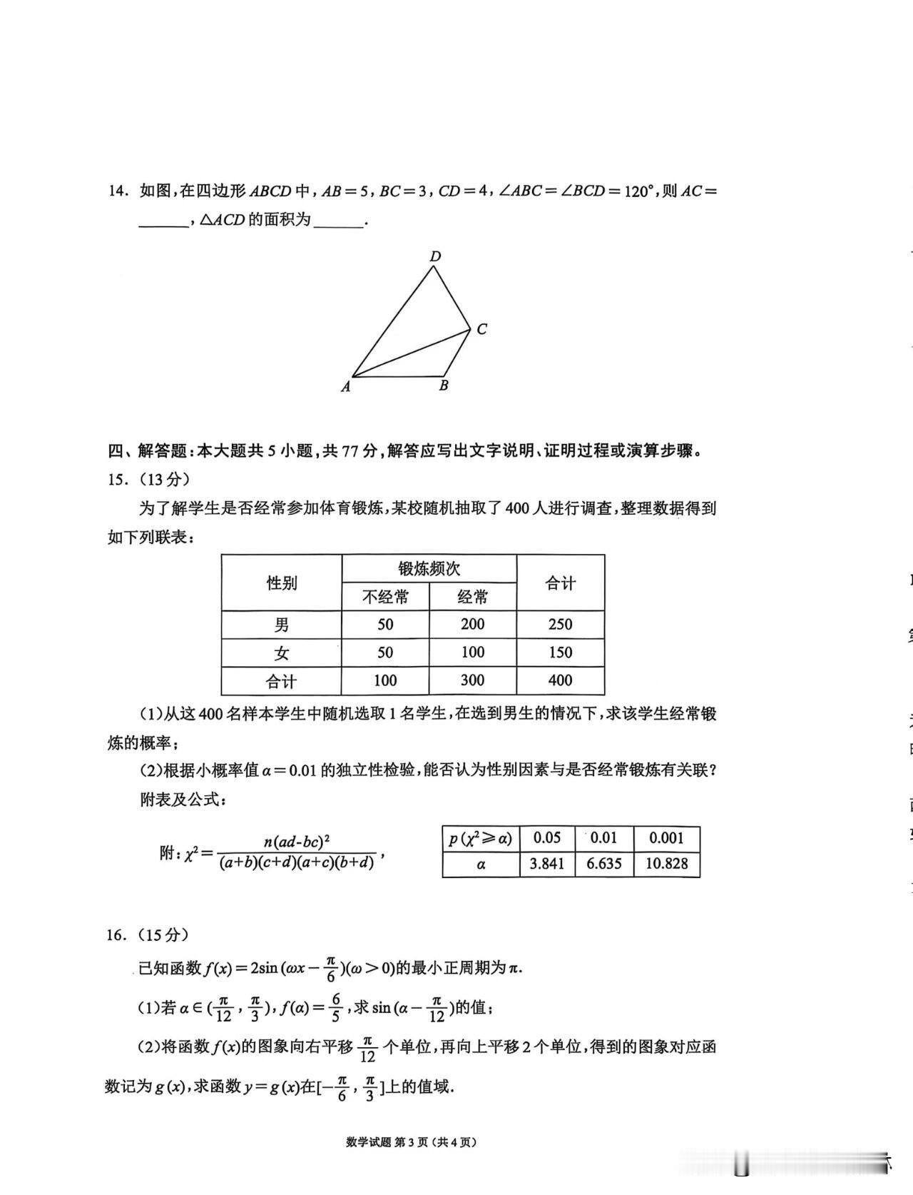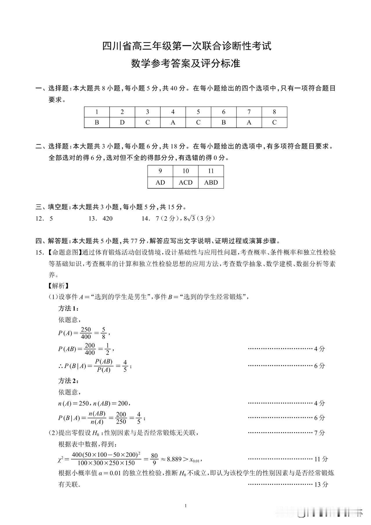 最新‼️四川省大联考名校联盟2026届高三第一次联合诊断性考试数学试题及详细答案