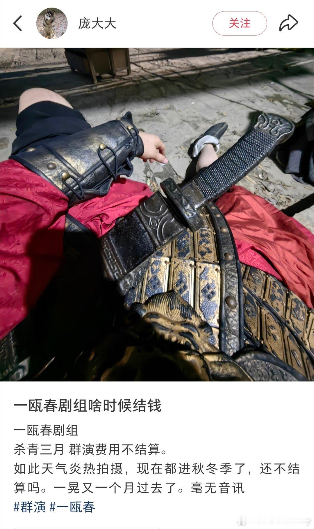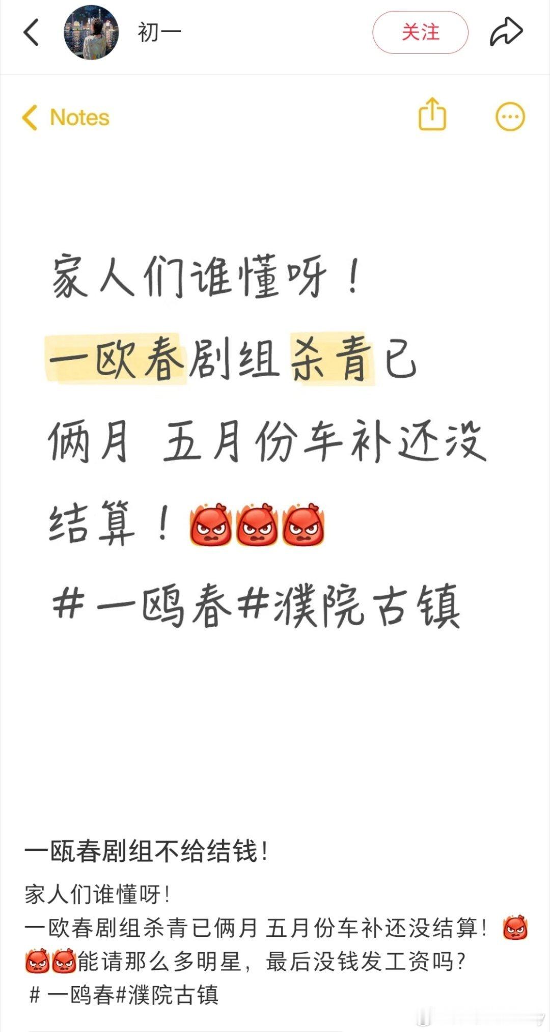 《一瓯春 》这个欠薪的事没人提吗?🍠上好多人说大热天拍戏还不给钱,已经开始起诉