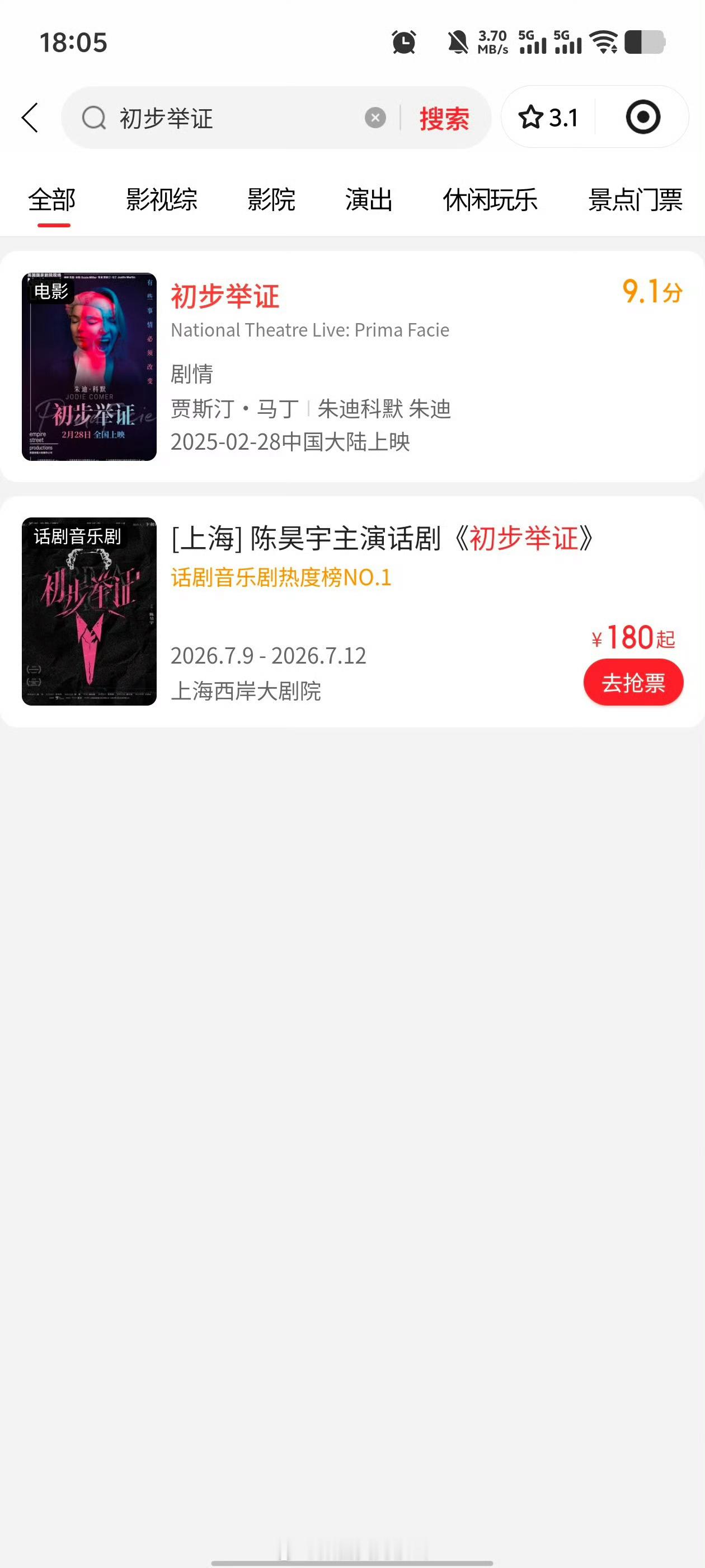 陈昊宇主演话剧大麦想看人数 12.3w猫眼音乐剧话剧热度榜一开票全平台全部秒罄