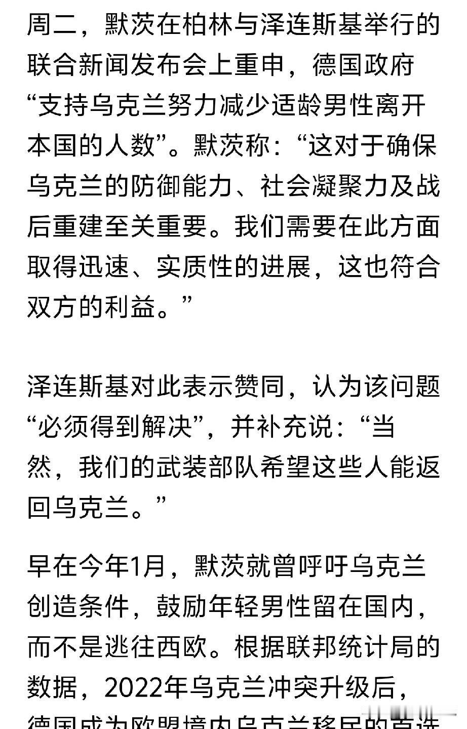 泽连斯基呼吁适龄青年回国参战,德国的默茨对此极为支持! 然而就在前一日,泽连斯