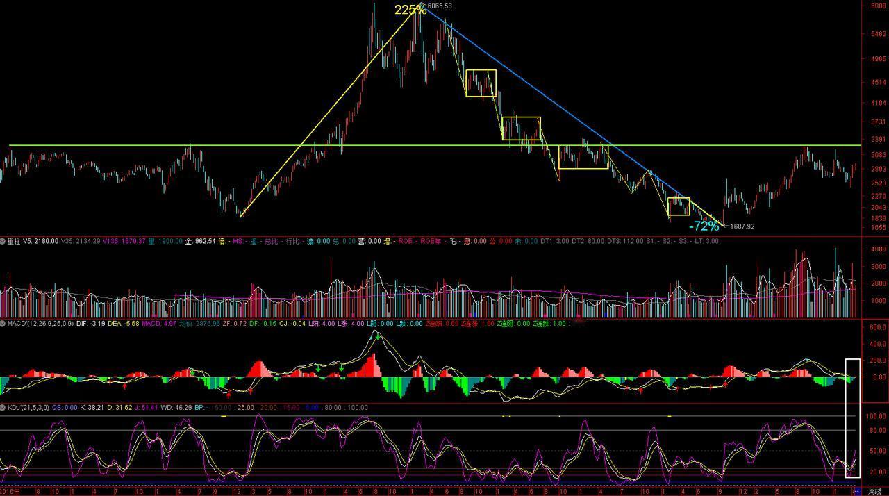 MACD回抽0轴后金叉,KDJ低位金叉,周线级别起涨信号,如市场无大调整大利空,后面有望冲击绿线压力位。