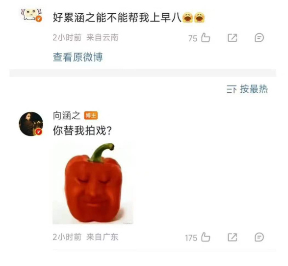 向涵之 你替我拍戏 粉丝问向涵之能不能帮她上早八,向涵之回复粉丝:你替我拍戏?