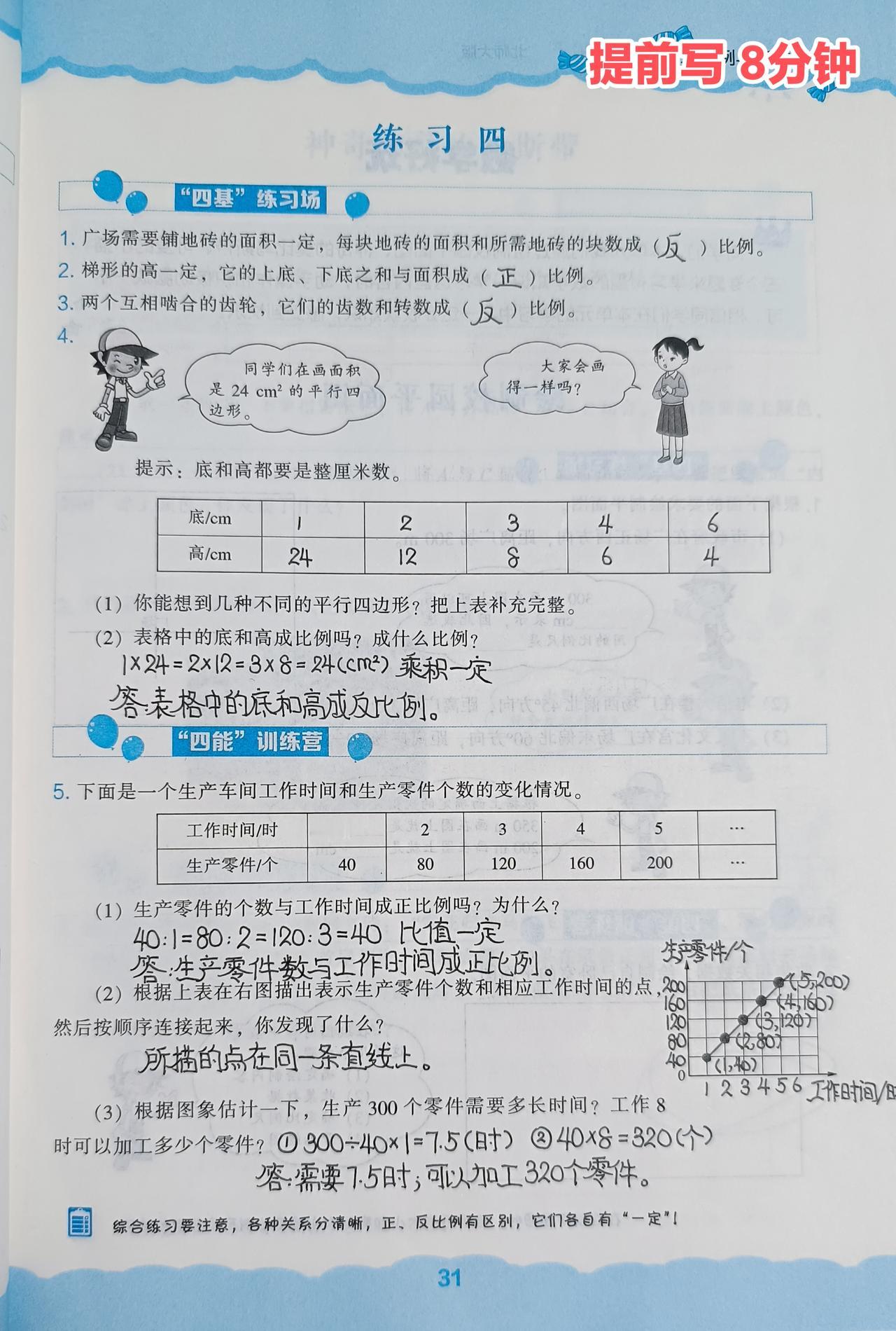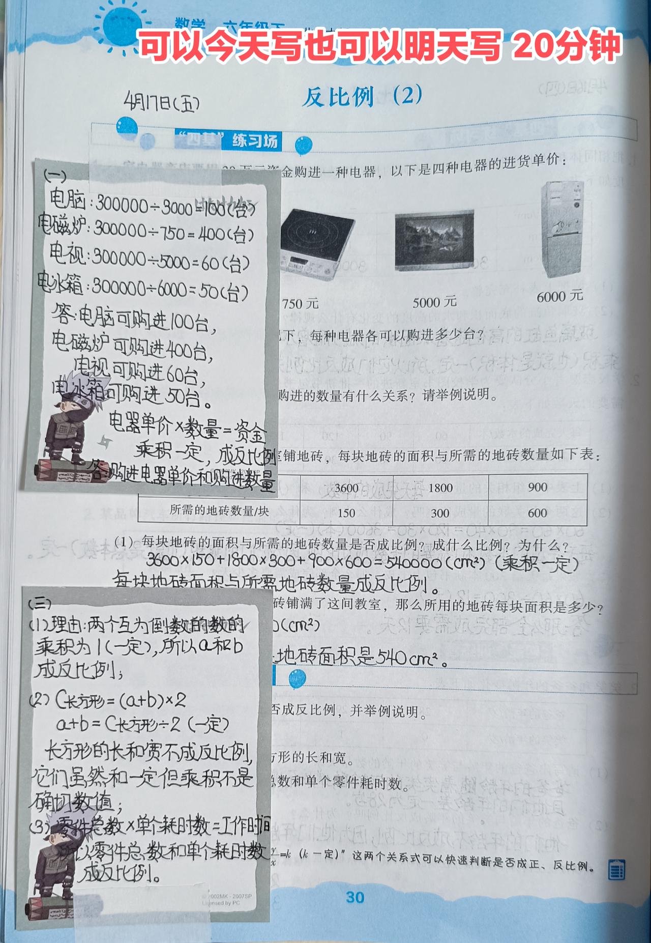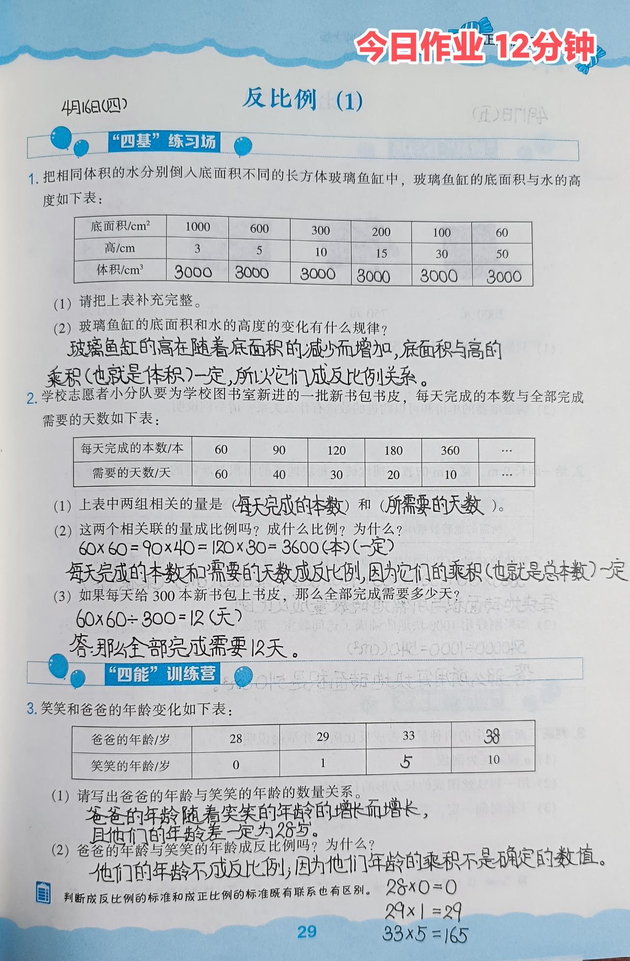 2️⃣数学练习册:今日作业12分钟+今天或明天作业20分钟+提前写8分钟