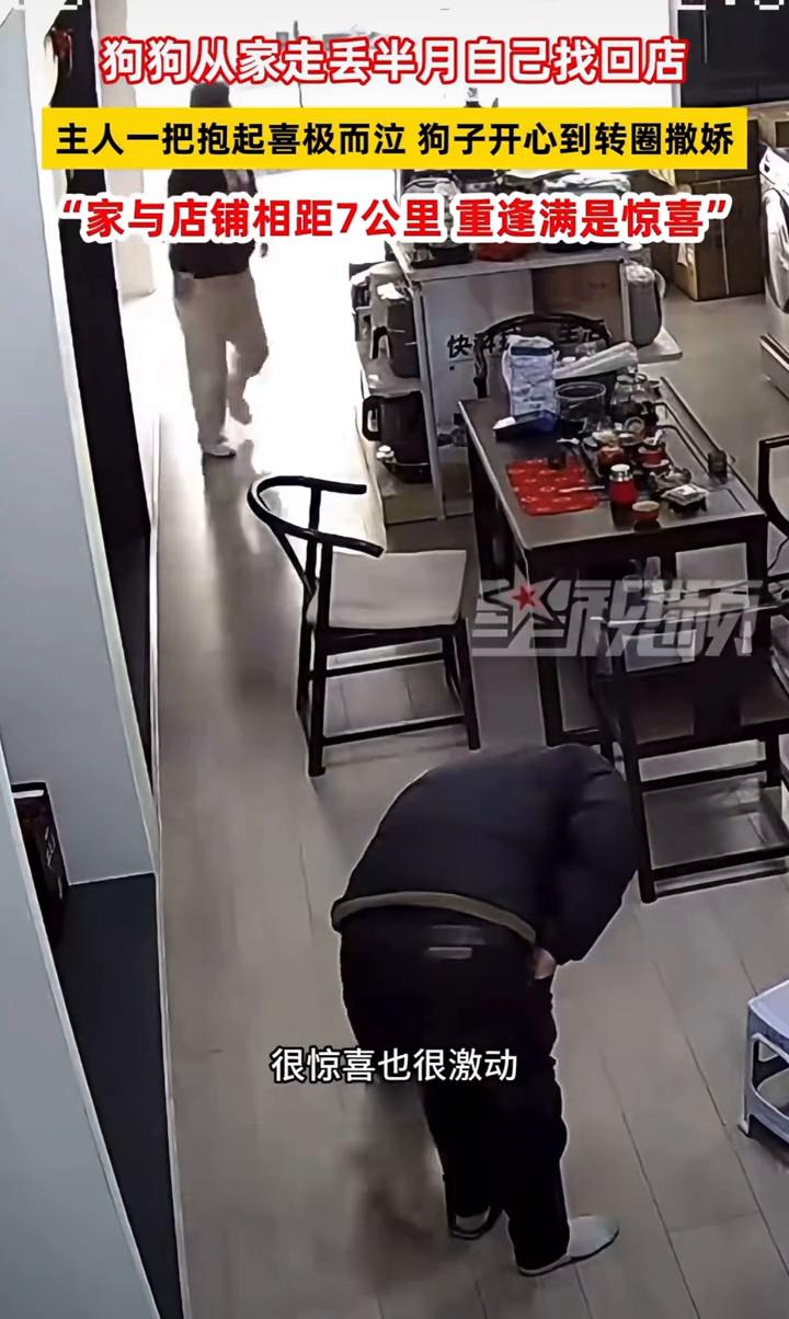 狗狗从家走丢半月自己找回店,主人一把抱起喜极而泣,狗子开心到转圈撒娇。 星视频原