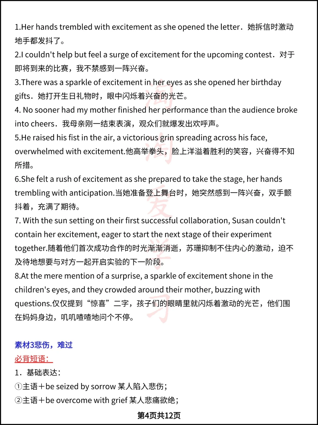 高中英语读后续写12大情感,心理描写素材