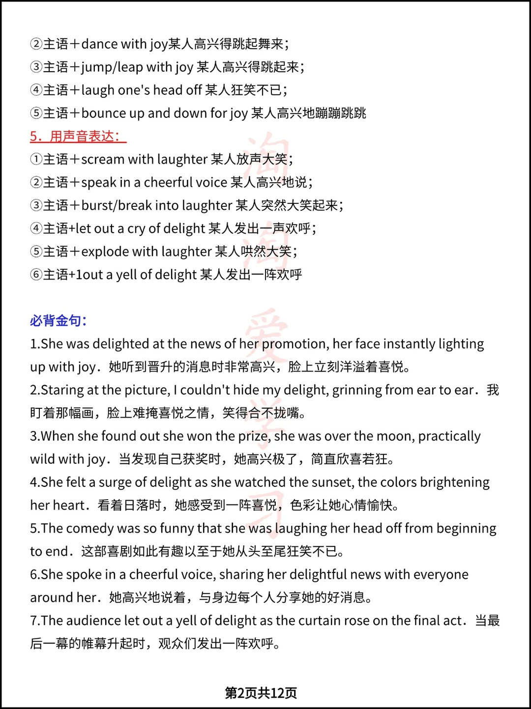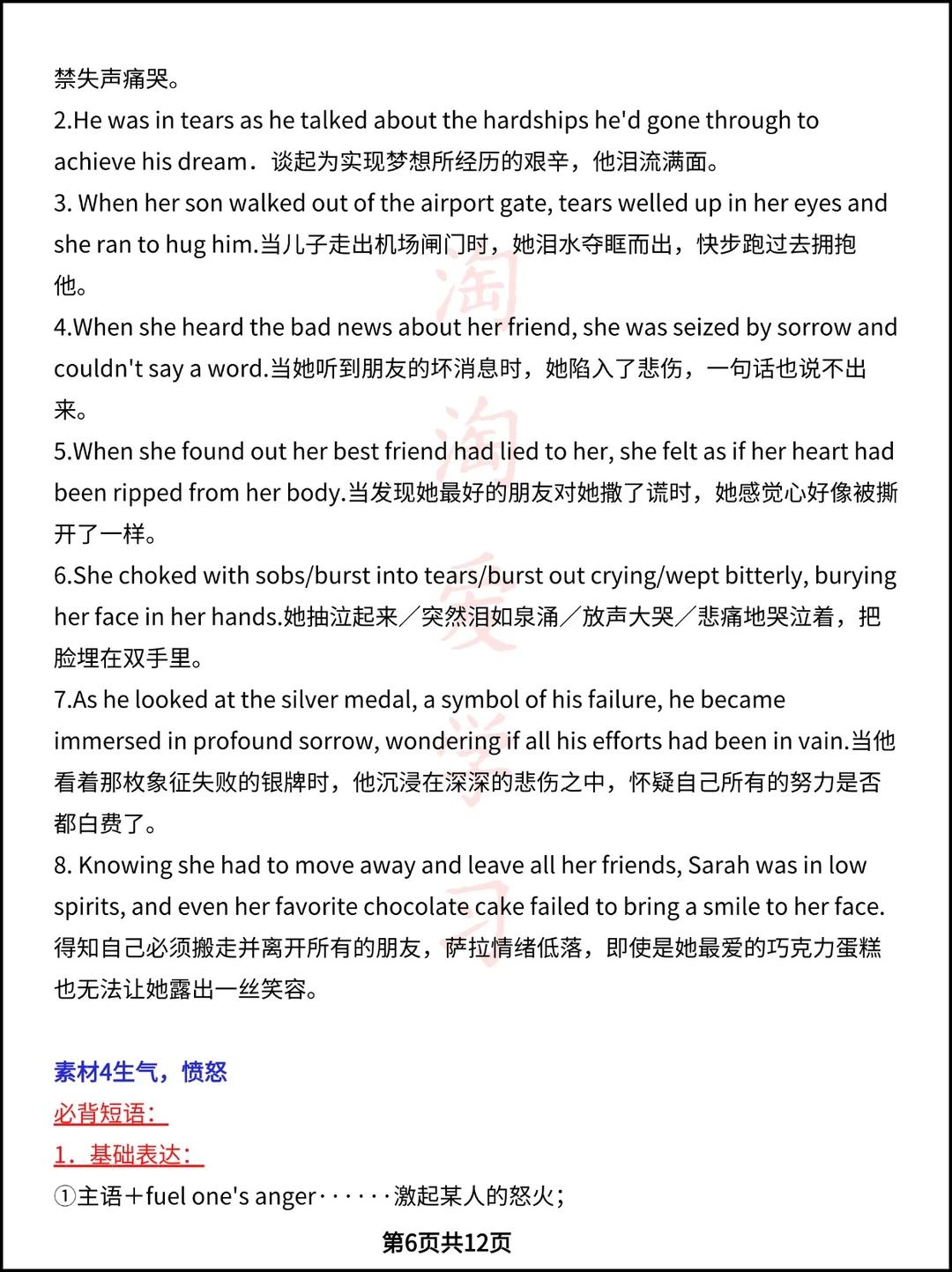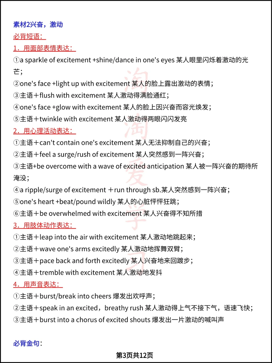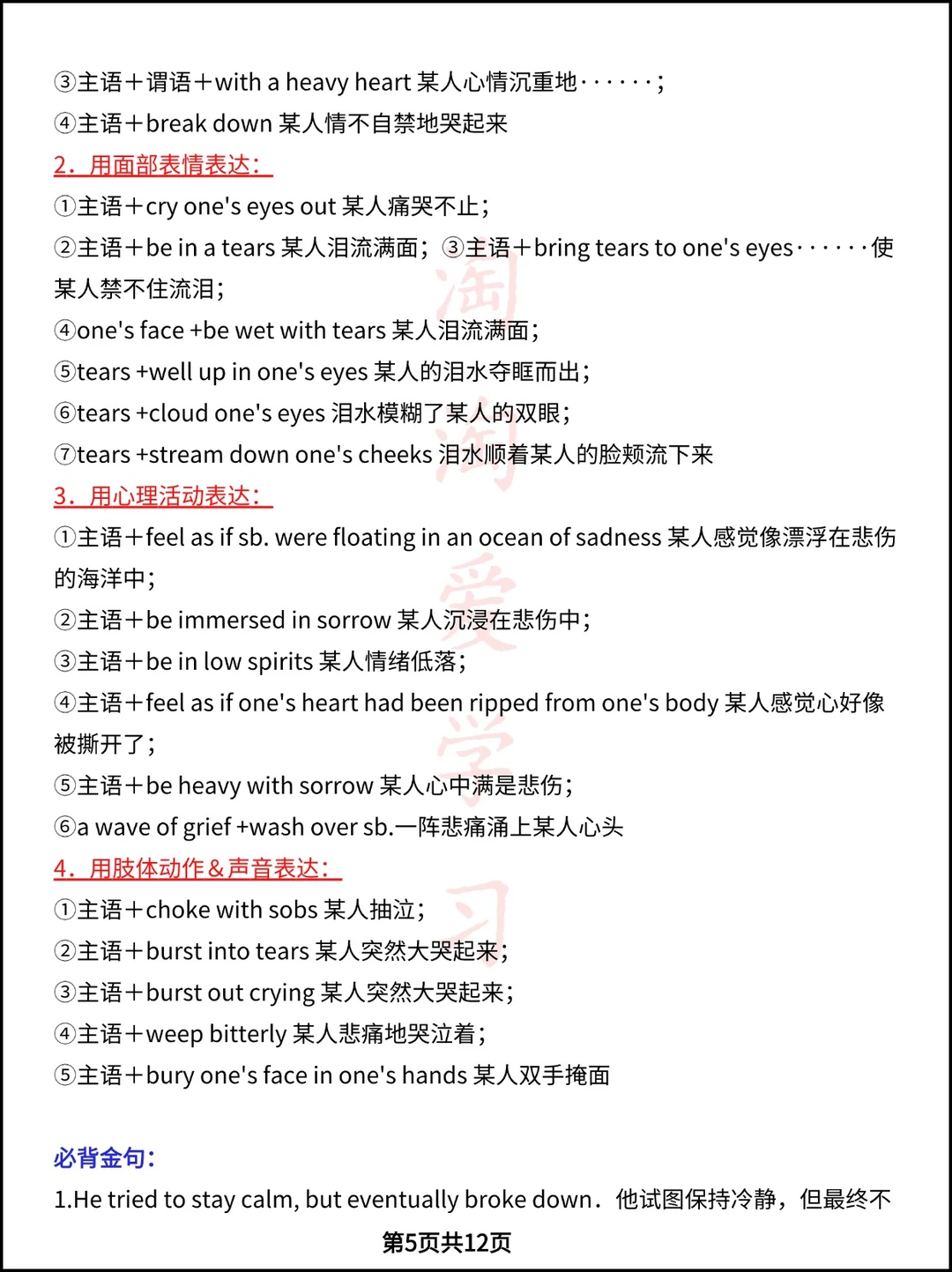 高中资料 学霸笔记 高考英语作文 高中学习资料 英语读后续写 高中英语笔记 英语写作 作文方法 心理描写素材 复习资料