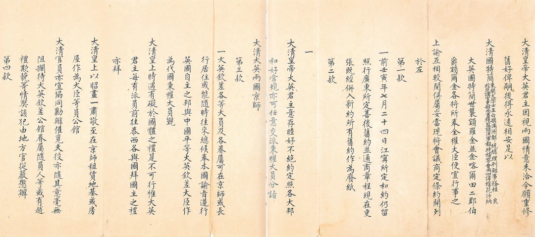 第二款 大清皇帝、大英君主意存睦好不絕,約定照各大邦和好常規,亦可任意交派秉權大員,分詣大清、大英兩國京師。