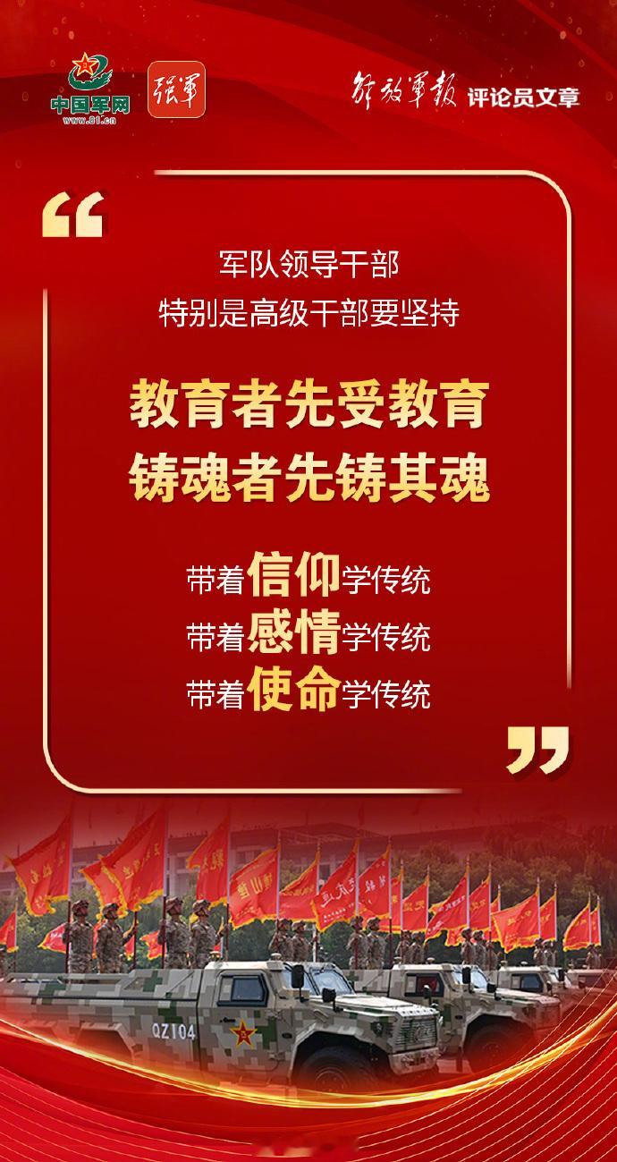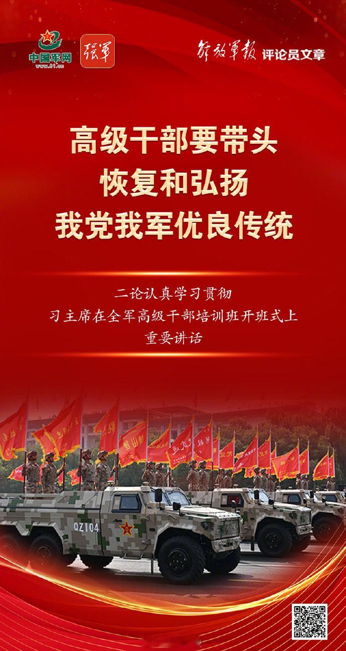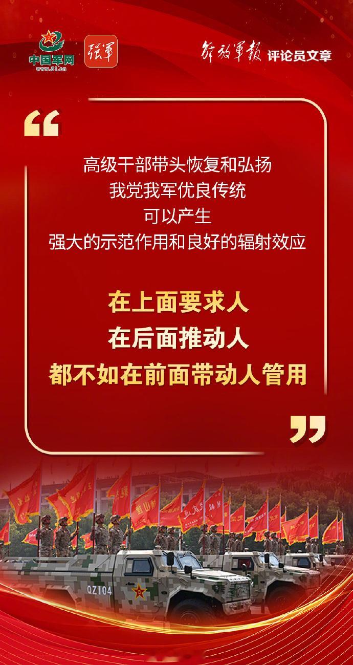 【金句海报 | 解放军报评论员文章②:高级干部要带头恢复和弘扬我党我军优良传统】(解放军报)