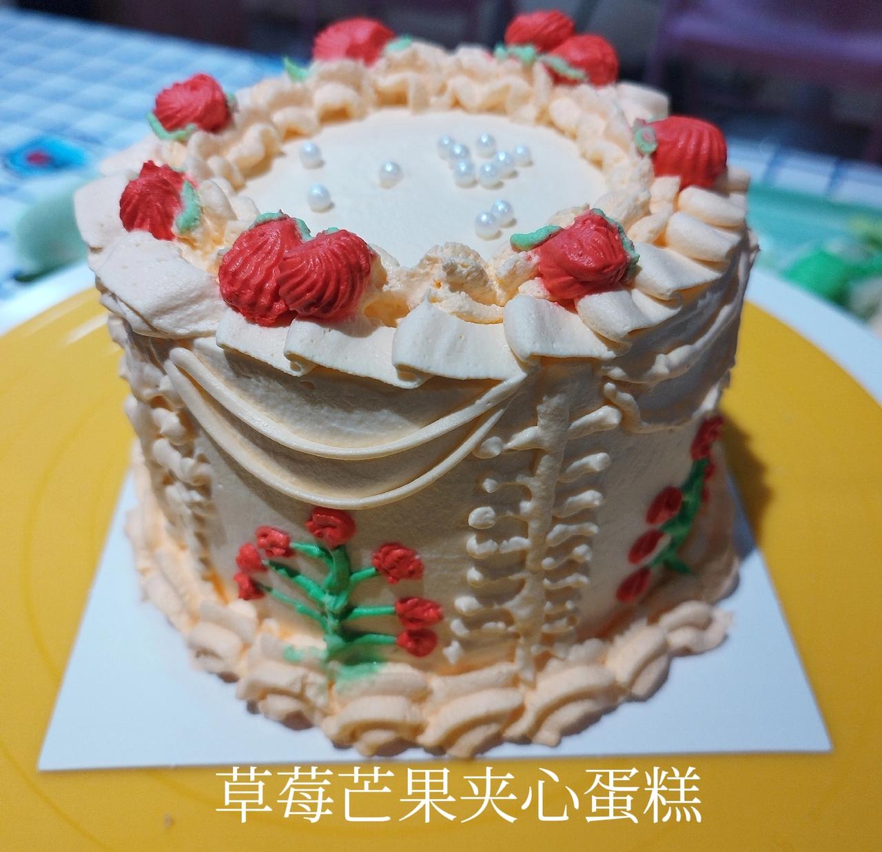 图3是我做的奶油蛋糕,里边夹的新鲜草莓和芒果,奶油里加了可可粉,超好吃。