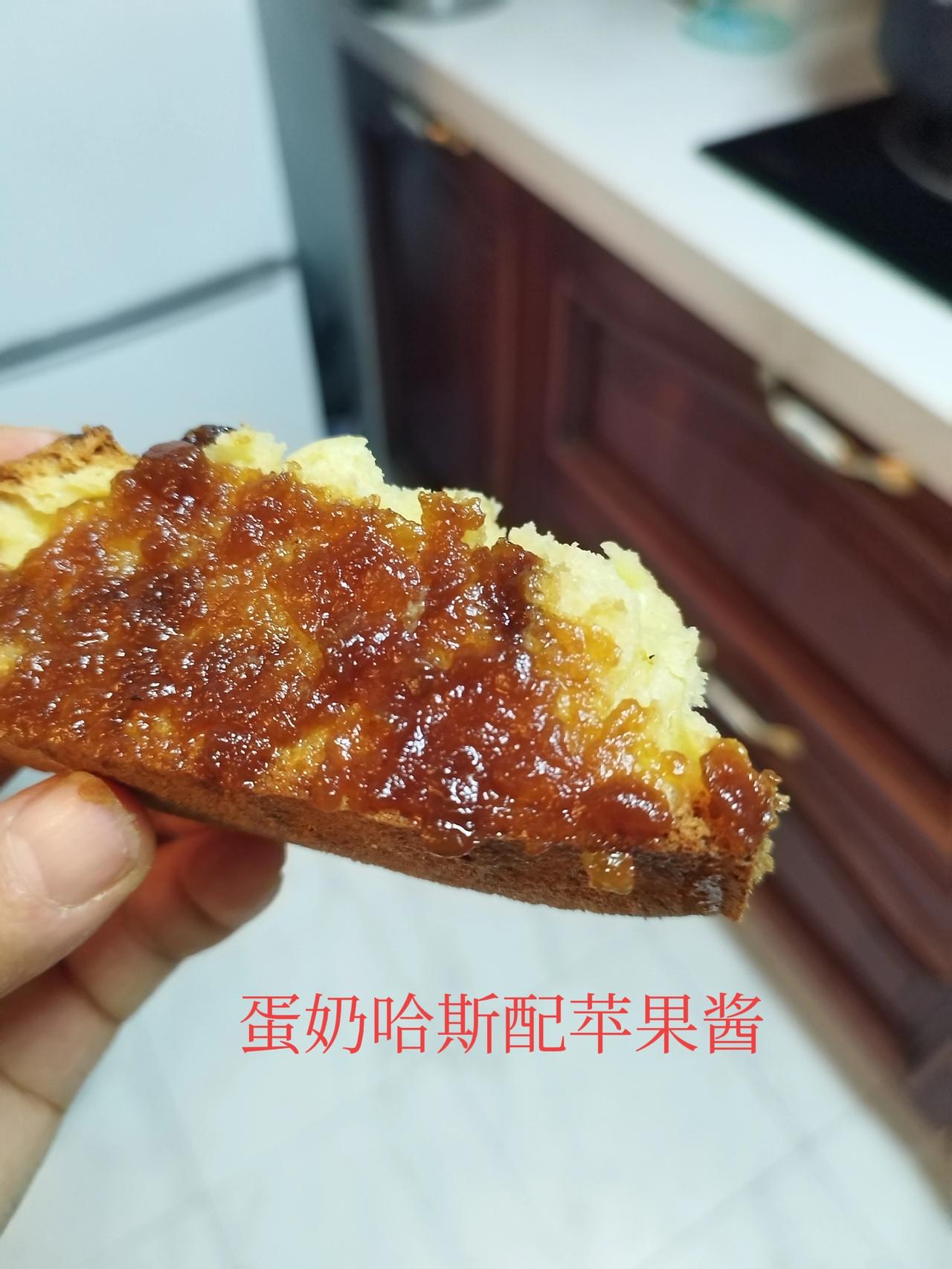 图9是我自己烤的蛋奶哈斯配自己熬的苹果酱,云朵般的口感,真正的美味。