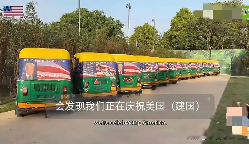 太魔幻了!为了庆祝美国建国250周年,懂王选择将印有自己Logo的多辆三轮摩托赠送给印度![捂脸][捂脸][捂脸]