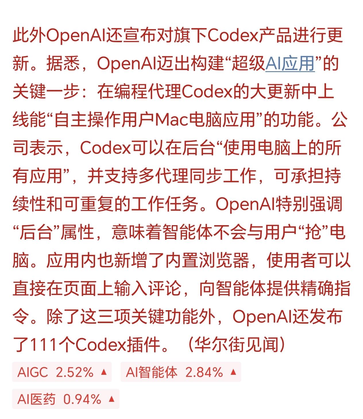 OpenAI迈出构建“超级AI应用”的关键一步:在编程代理Codex的大更新中上线能“自主操作用户Mac电脑应用”的功能。