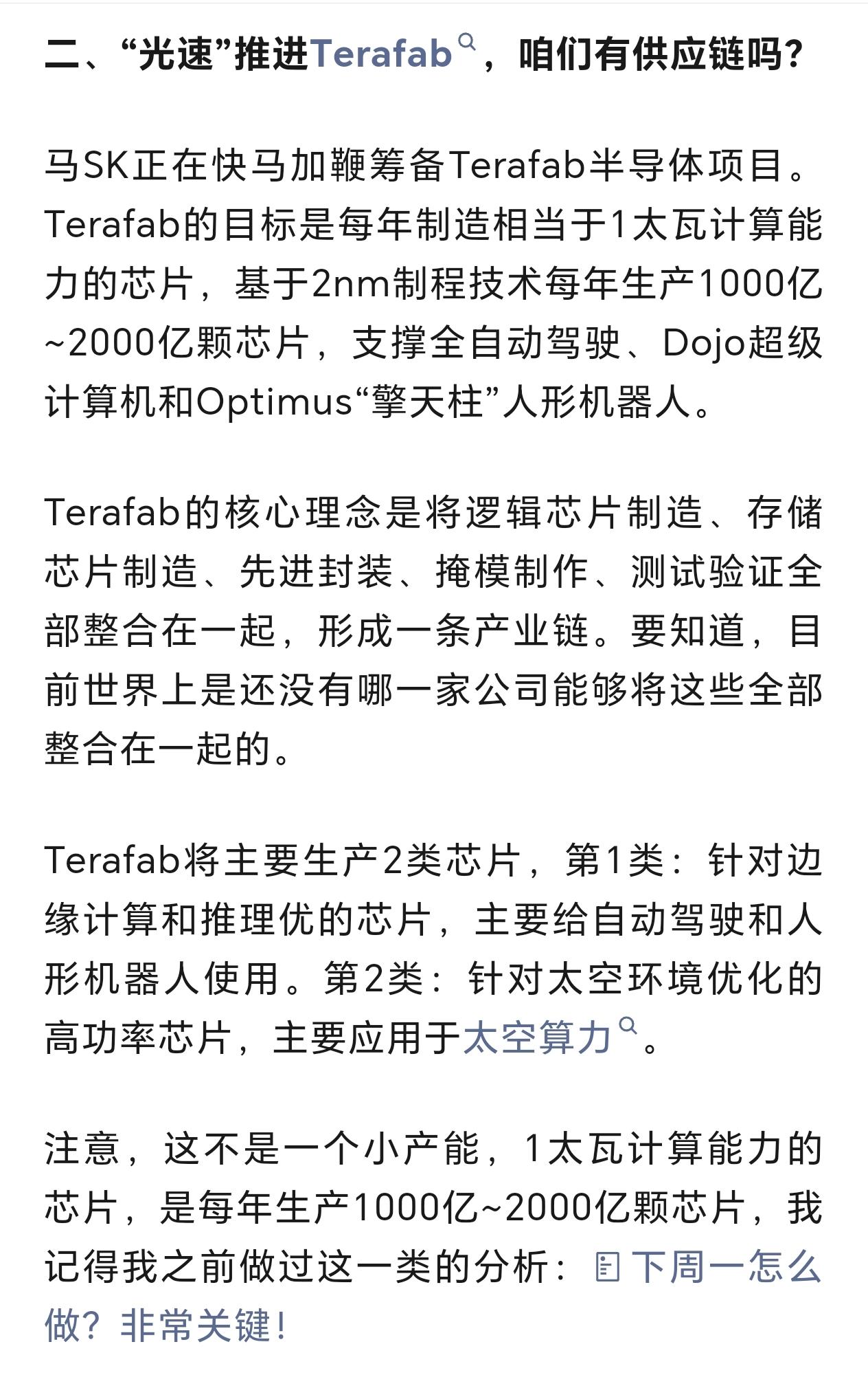 光速推进Terafab,咱们有哪些供应链