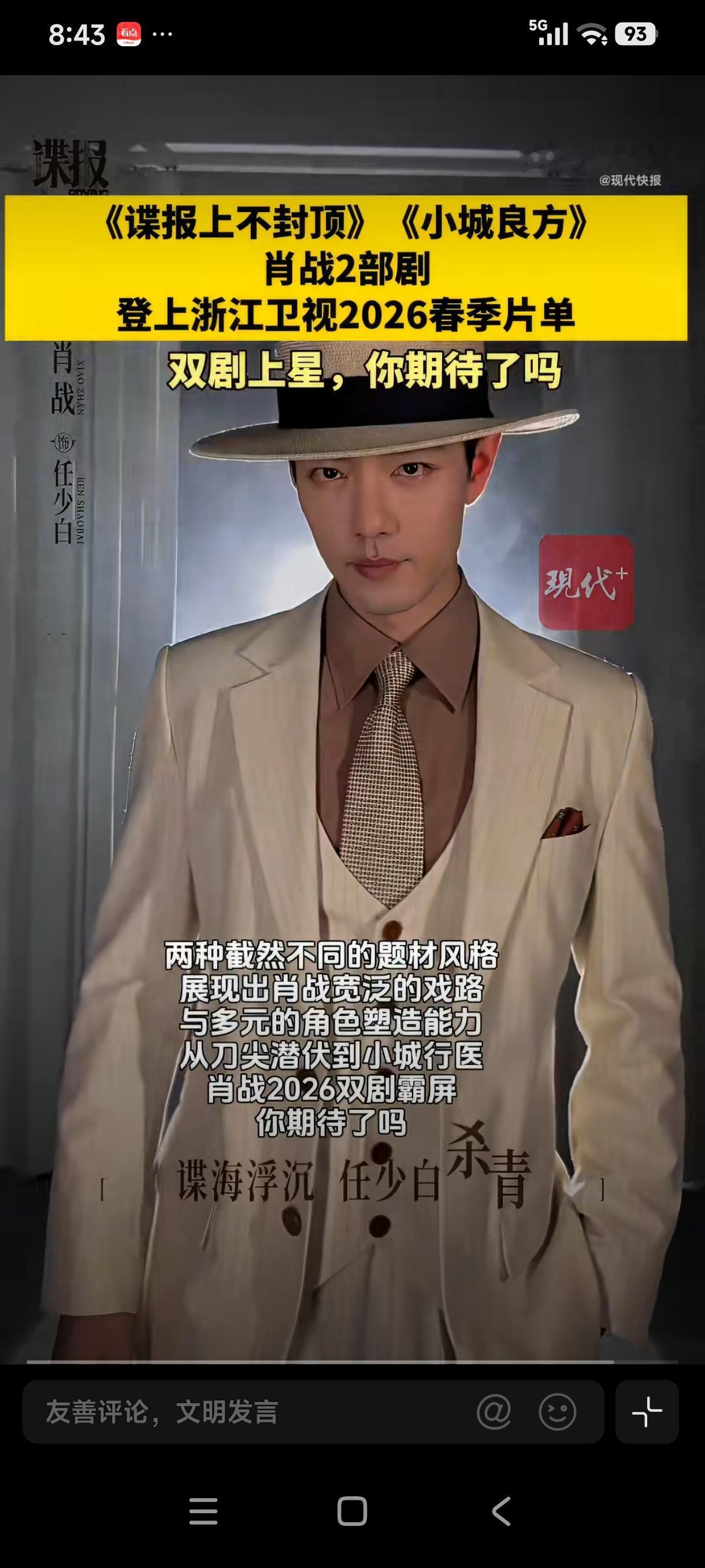 浙江卫视2026春季片单新鲜出炉,肖战两部重磅新剧强势上榜,题材反差拉满。