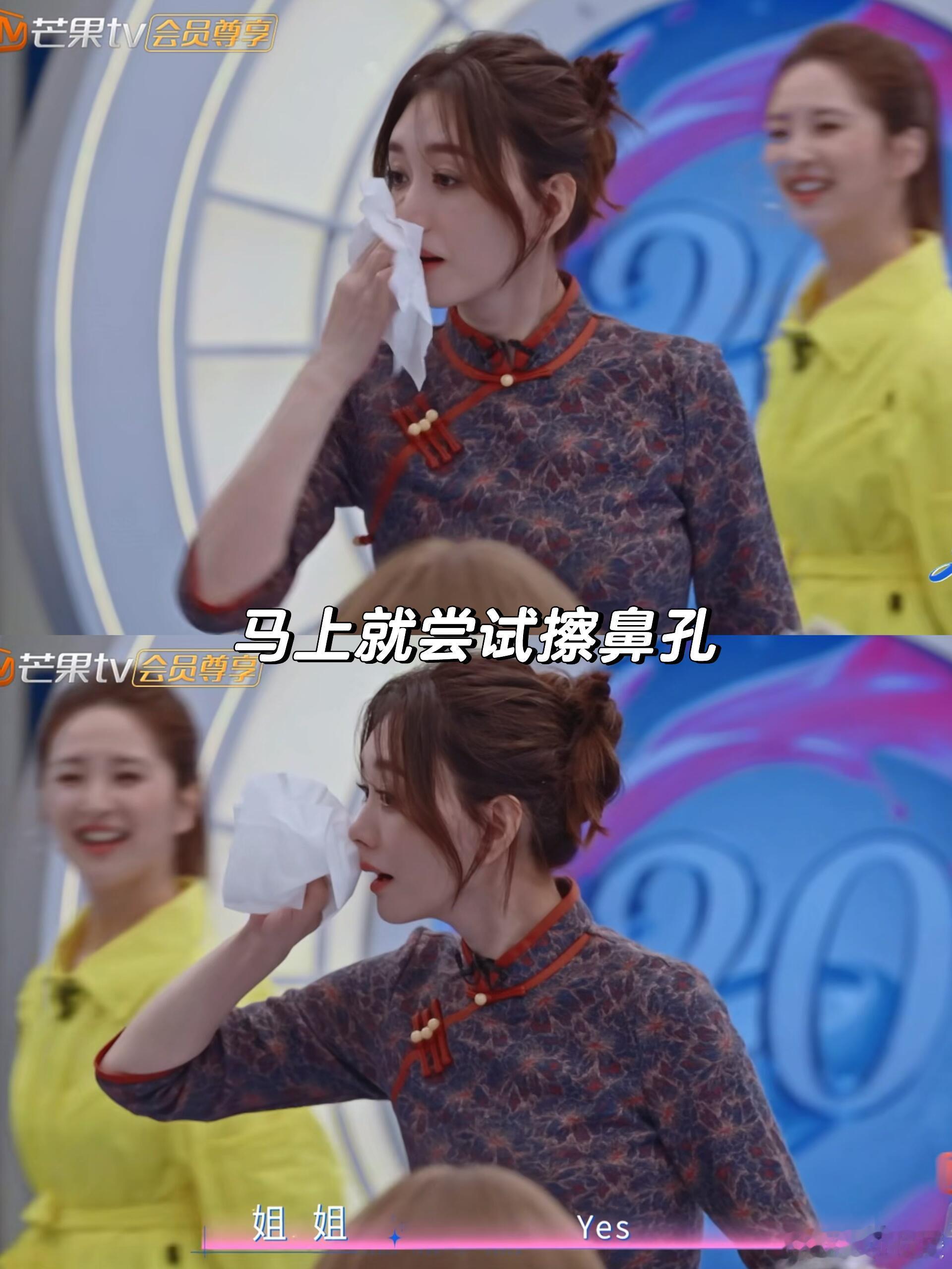 李小冉在游戏里的表现,简直要把人笑岔气!Yes or No问答环节,她代表出战,规则是用纸巾擦鼻孔,队友只能用Yes或No指示。只见她晃悠到桌前,似乎察觉到大家的眼色,立刻去拿桌上纸巾。一开始她尝试擦脸,被否定后,竟直接扣鼻子,答对啦!她还笑称“我就剩这点脑子了”,不愧是游戏小能手。到了猜热搜真假游戏,阚清子说起开麻辣拌店,李小冉却只顾着跟李心洁、黄灿灿说麻辣拌好吃,完全没在分析题目。李心洁想拉她回正轨,她反倒追问李心洁饿不饿。看来李小冉在自己擅长领域发光发热,闲暇时就自在放空,难怪能一直保持年轻状态呢。