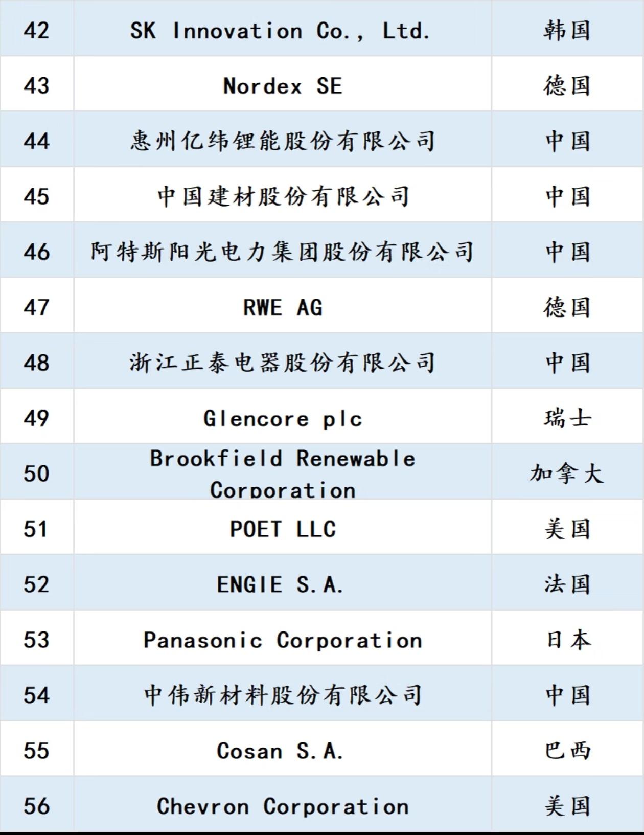 再往下数,前10里一半是中国公司,前50里中国企业更是占了半壁江山!从动力电池、光伏组件到风电设备,从上游材料到下游应用,咱们直接把赛道“焊死”在自己手里!