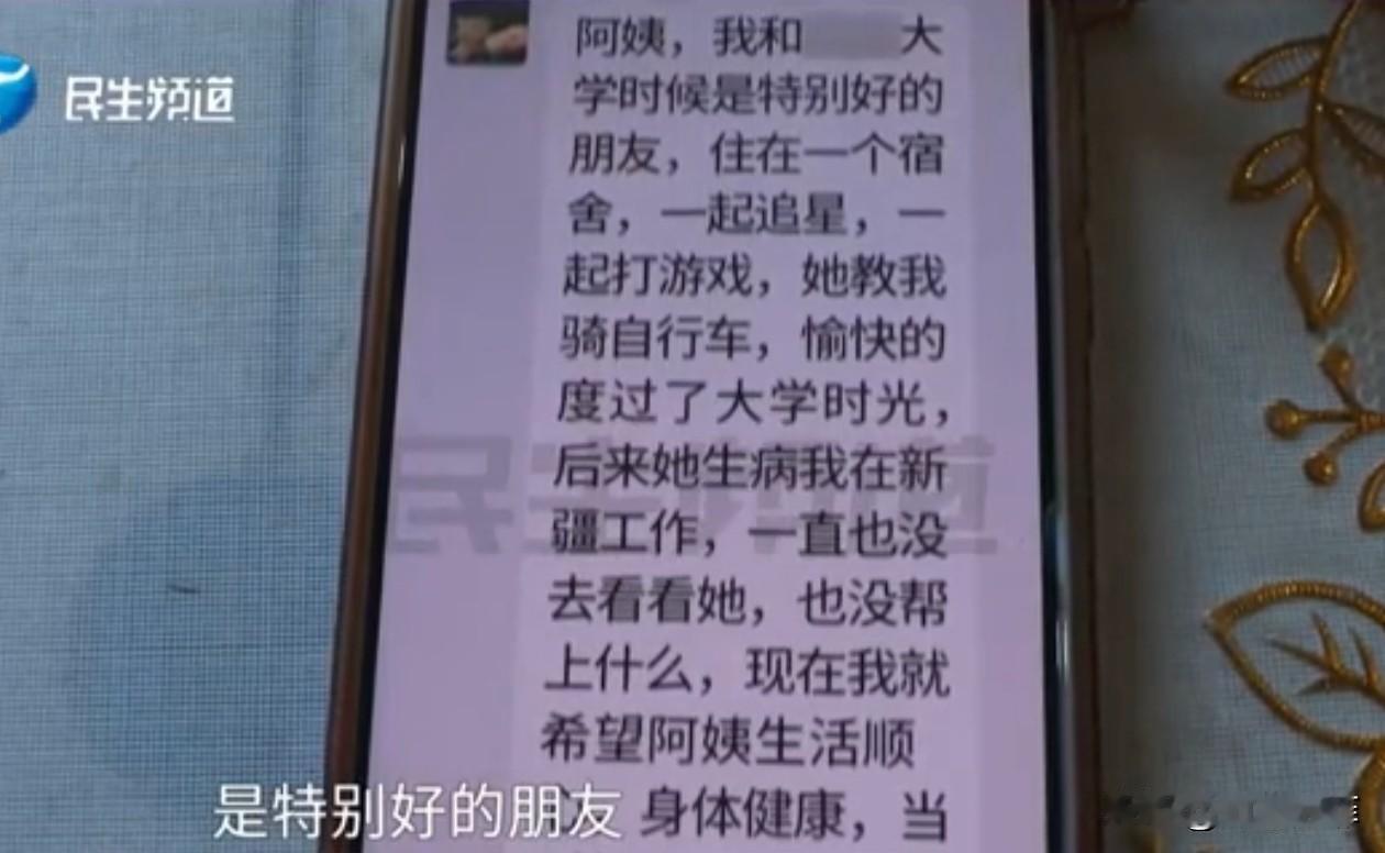 最后,经过媒体的沟通,郑蕾蕾托同学转文字给张女士,说钱是朋友心意不用还,希望阿姨生活顺心,以后会回老家看她。张女士也表示,这些同学都是她的孩子,以后会尽力帮她们。