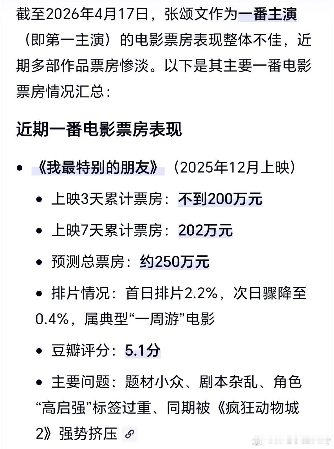 沈腾一番票房实绩: 400亿张颂文一番票房实绩: 200万现在内娱已经这么巅了吗?张颂文居然和沈腾比咖位,一番票房400亿电影人和200w一番电影实绩糊糊演员,确定这在一个档次?不是年龄大就代表咖位大,张颂文微博没有粉丝,离开微博没人认识,业内评估没有实绩,到底谁把他俩放一起比较?还真是勇气可嘉!