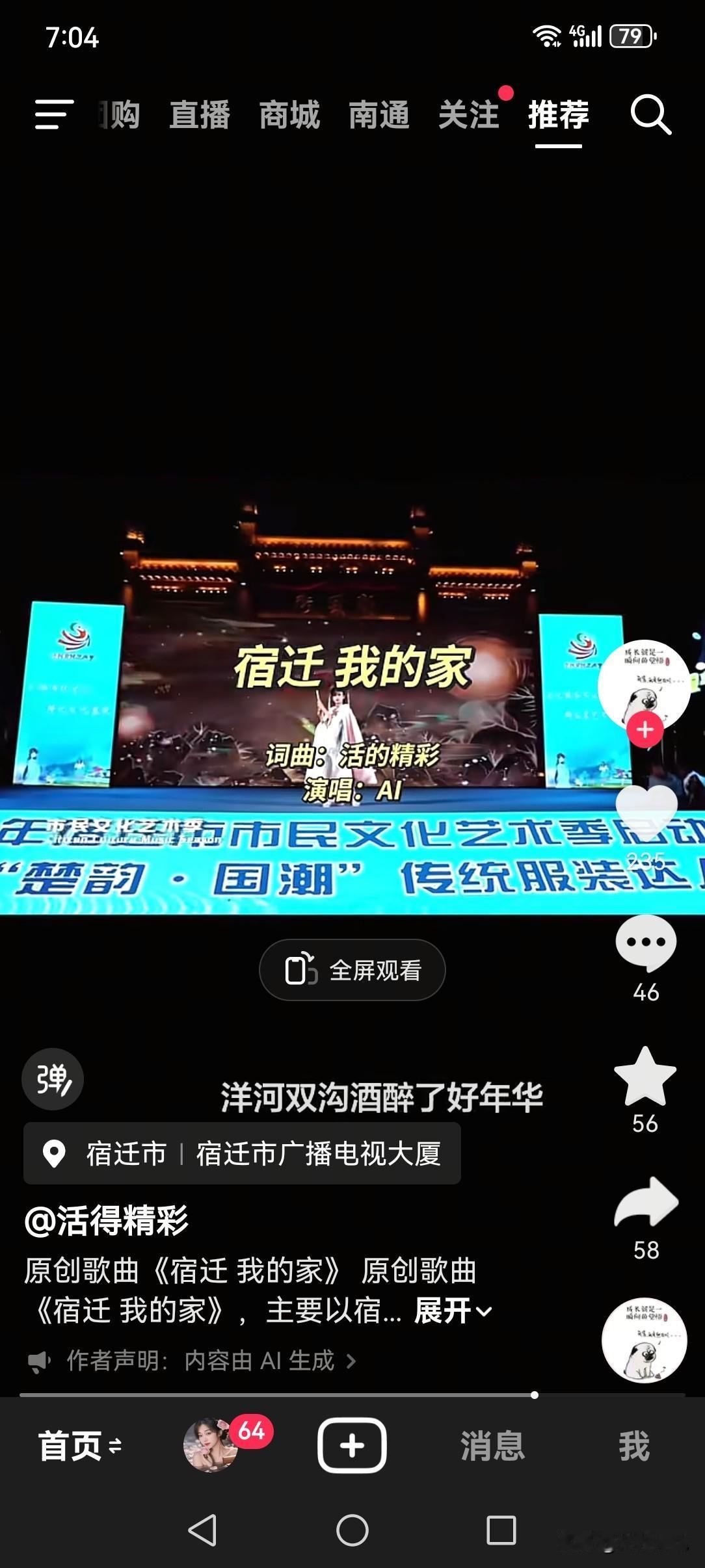建议把《宿迁、我的家》这首由Al生成的歌曲在宿迁主场VS南京队时作为开幕式主打歌