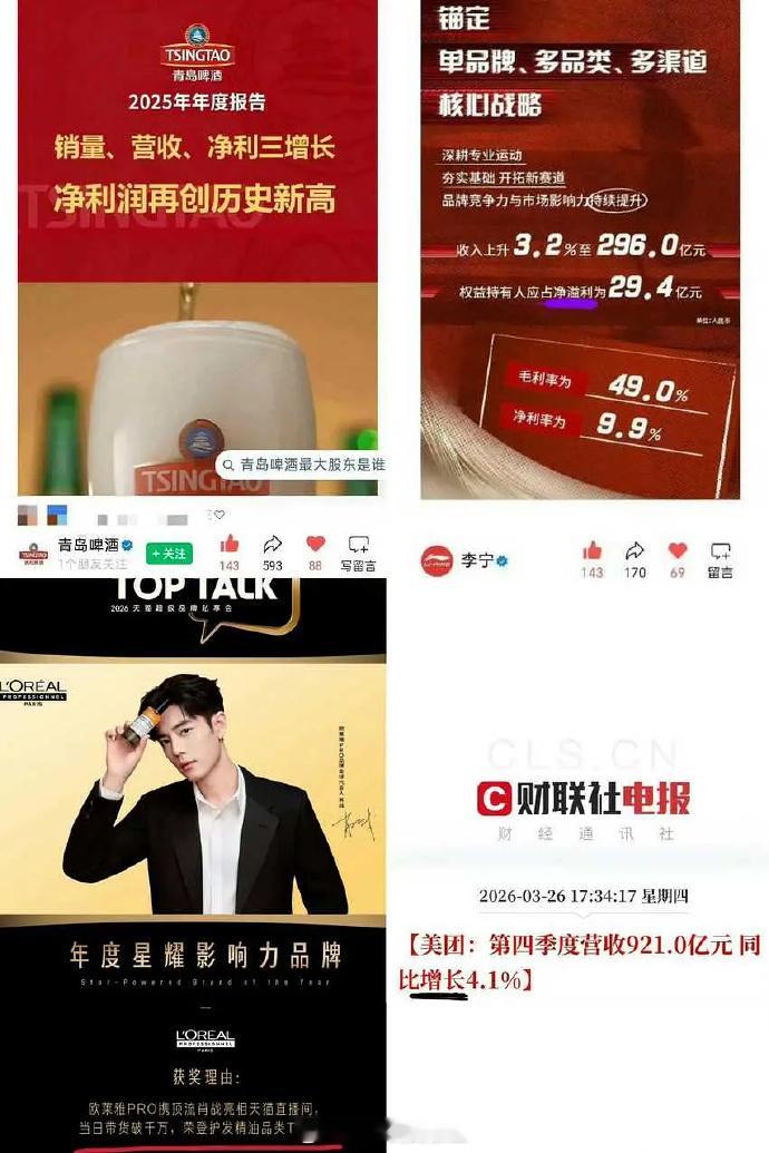 肖战的实绩太多了,光去年两部电影预售5个亿最直白的真金白银,还有实体专辑历史第一,数字单曲吉尼斯世界纪录,这些都够别人一辈子望尘莫及了,以至于粉丝很少像刚冒头的新人一样吹代言销量,事实上肖战代言的成绩也都是以亿为单位的,只上财报和官方年报的含金量哦