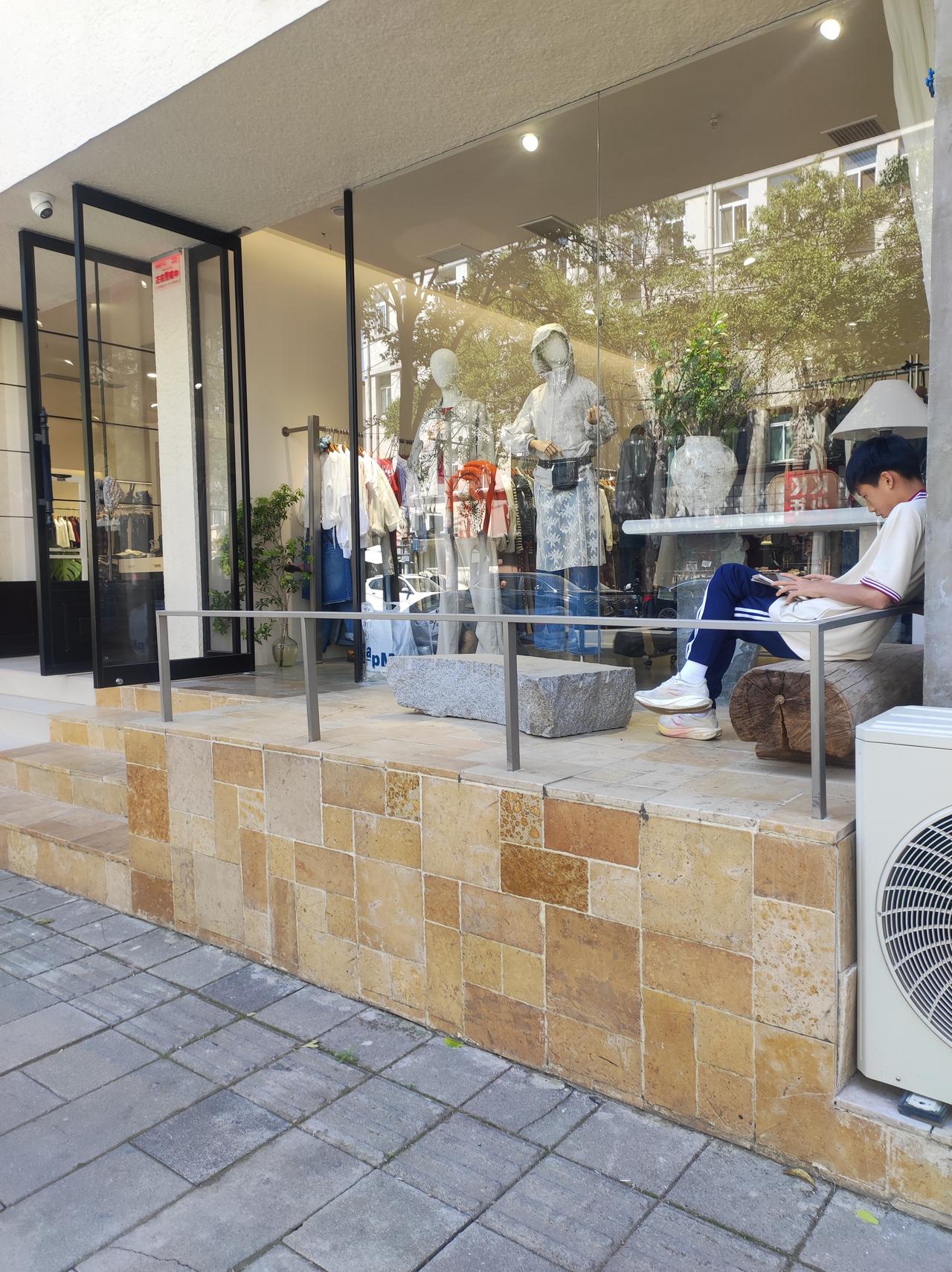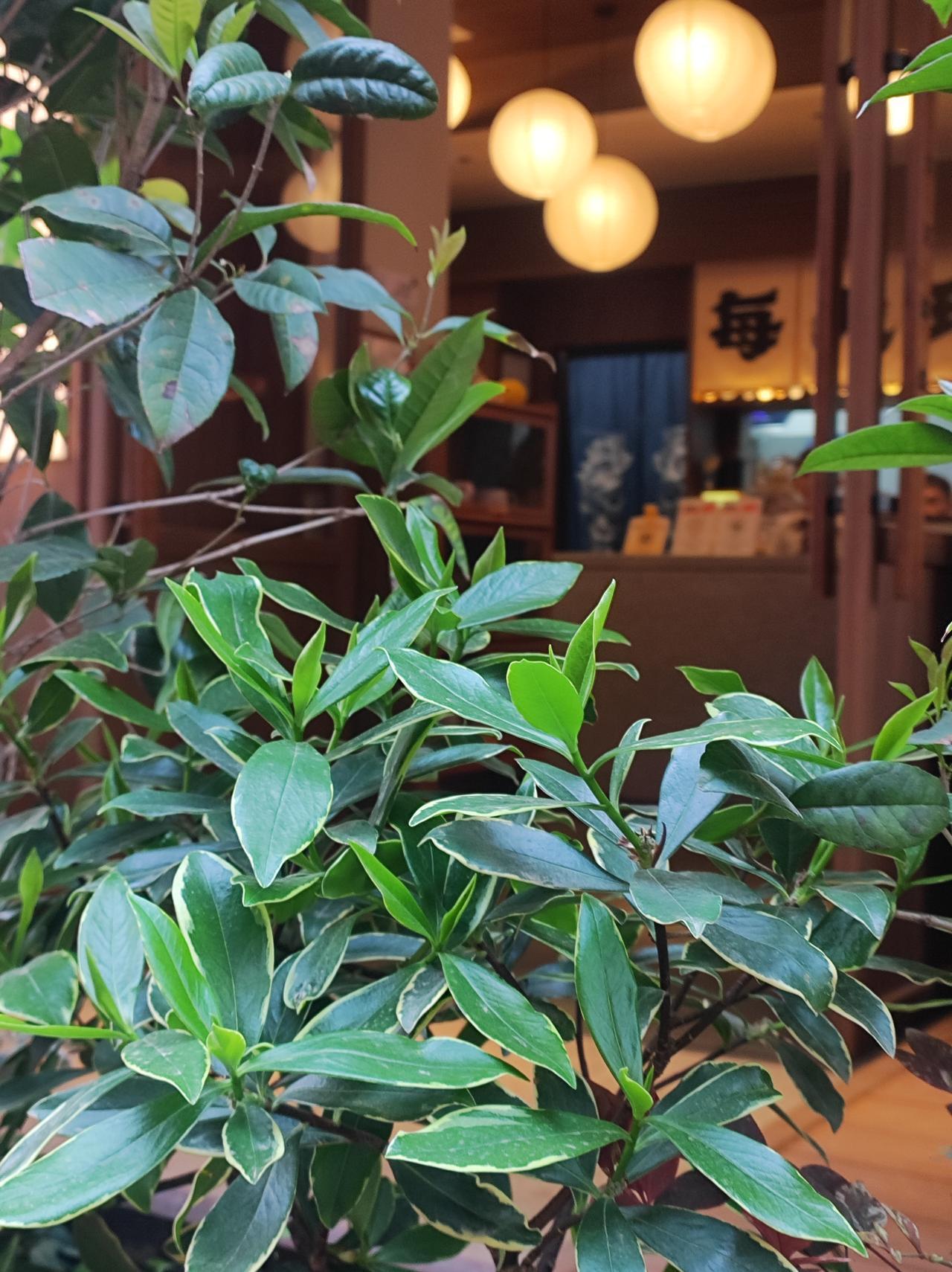 街拍 这店面装修的很舒服,如果门前植物是瑞香,就更好了。