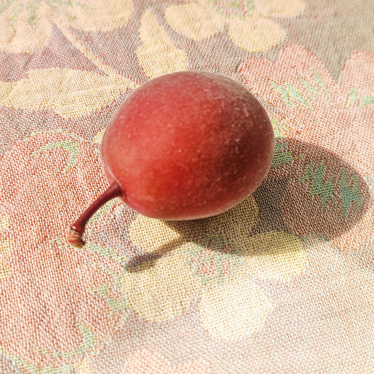 美人梅的果子紫红,很漂亮,花却密密麻麻不好看。梅花独领风骚,气韵生动,果实却很普通。看来好事不能占全,植物都这样。