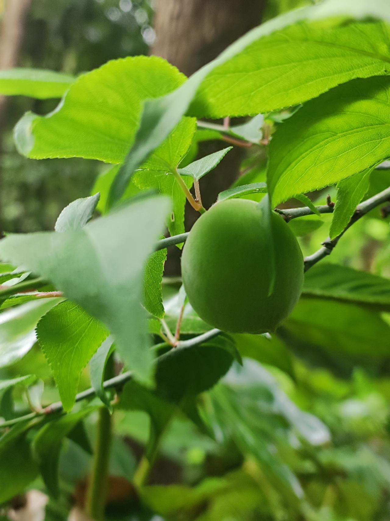 暮春,小梅山一派葱绿。冬天来过很多次,只为寻找那朵最美的花。今天路过,习惯性的在枝条上一瞥,发现梅花的果实已经这么大了。只是果子并不多,大概是物以稀为贵吧。